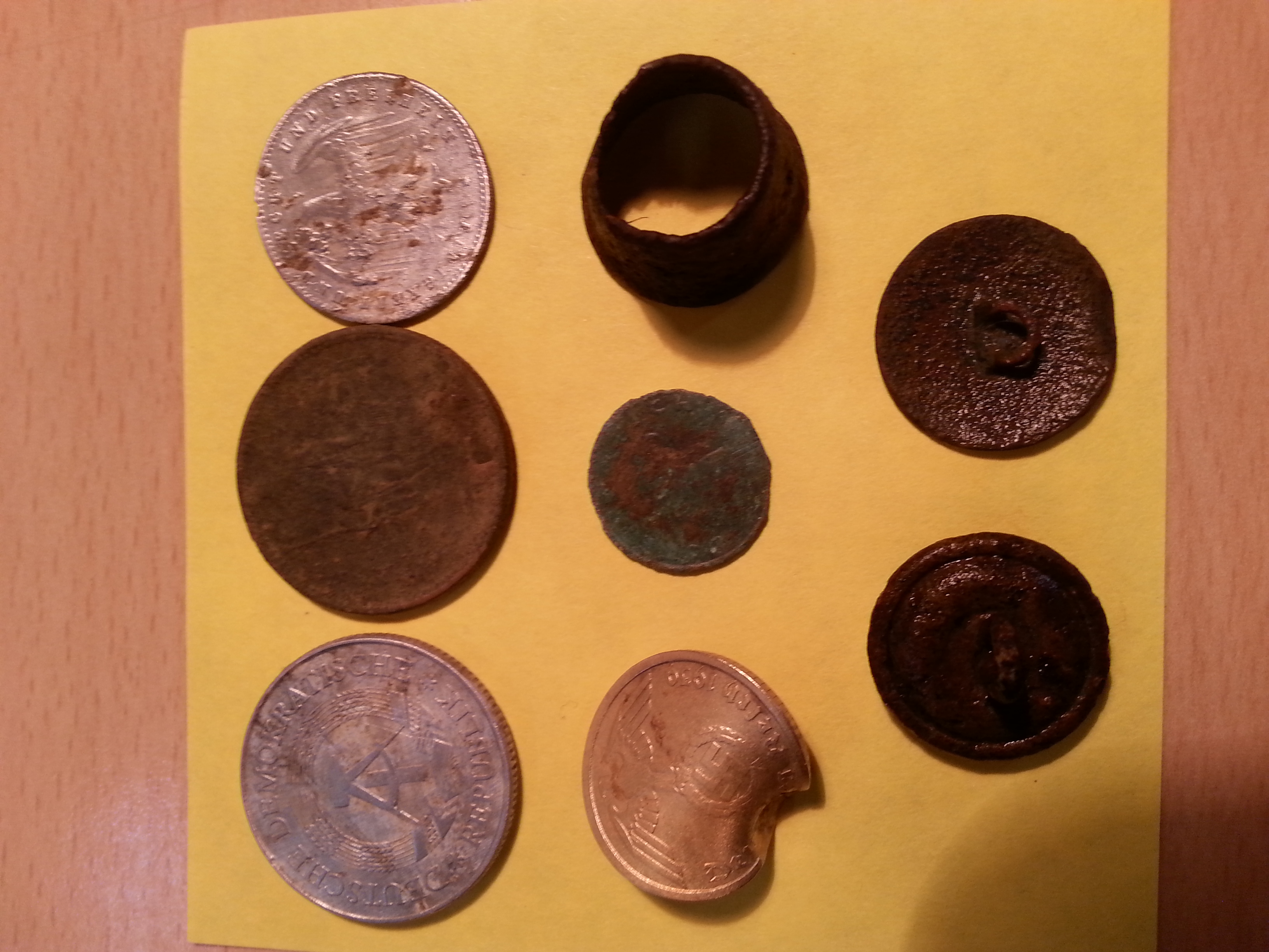 Außerdem einen Fingerhut aus Kupfer, einen Scheibenknopf und einen normalen Knopf.