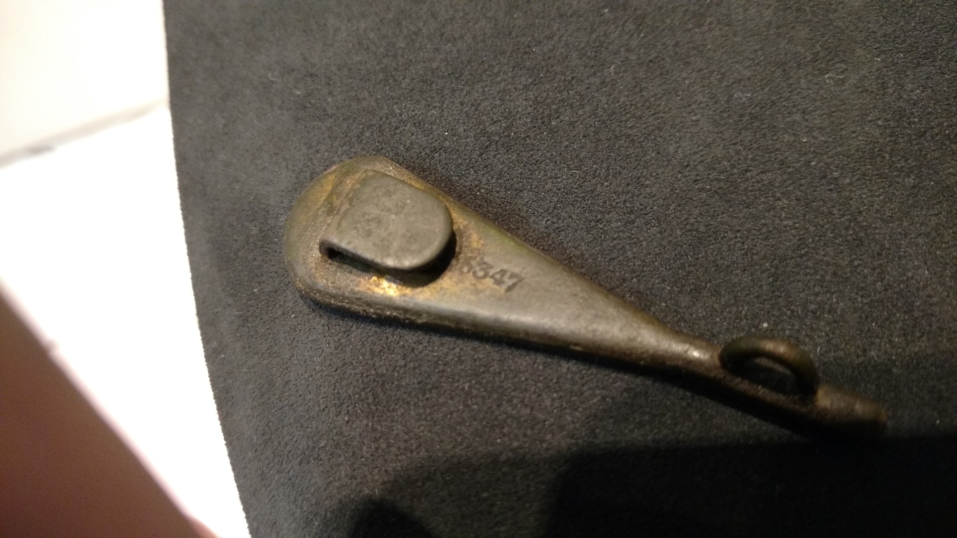 Vorderseite vergoldet, anhand der Rückseite würde ich ja fast sagen, dass es eine Art Schnalle ist, doch durch die Öse passt maximal ne Kordel.