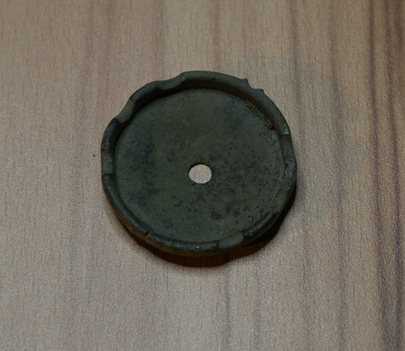 das teil mit den 4 löchern ...kein ahnung ...ist aus kupfer und die größere scheibe mit den kerben im rand weiß ich auch nicht ebenfalls kupfer