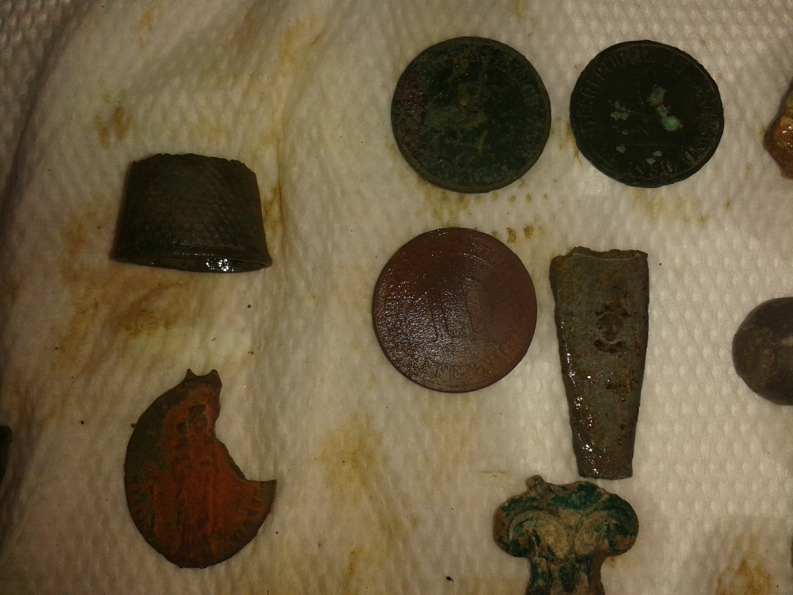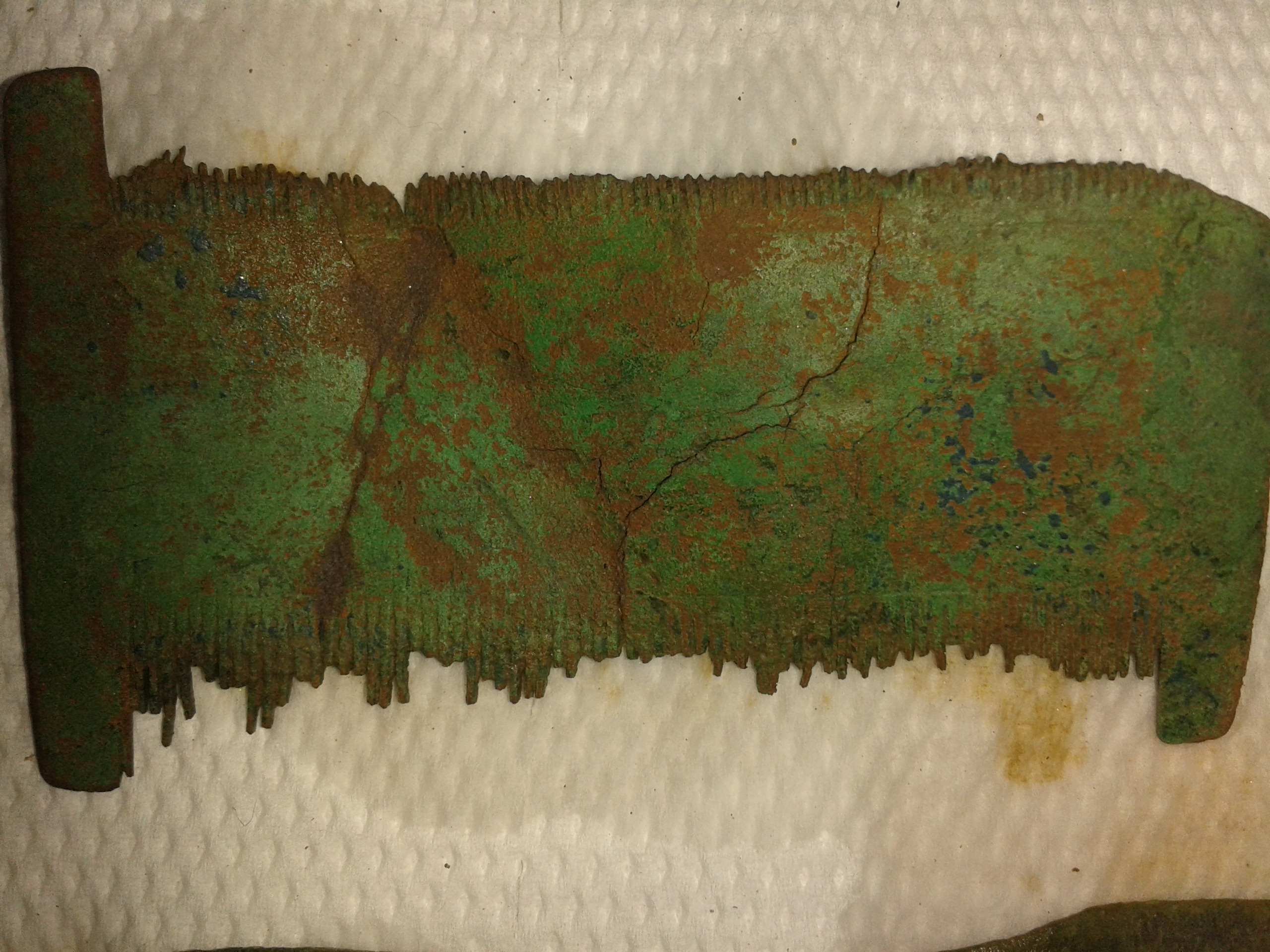 das Ding mit den Zacken sind die Überreste eine Läusekamms aus Kupfer, die Dinger sehen heute noch genauso aus, sind aber meist aus anderem Material. ( kenne ich noch aus meiner Kindheit ) Was frühgeschichtliches ist jetzt auf den Fotos nicht zu entdecken, das Teil mit dem Kreuz ist wahrscheinlich der Rest eines Weihwasserkessels für die Wand oder der Rest eines Rosenkranzkreuzes, ansonsten sind Fragmente auf Fotos immer sehr schwer einzuordnen. Den Hirsch hast Du sehr gut getroffen.Wünsche Dir und Deiner Familie ein schönes Weihnachtsfest bis bald und