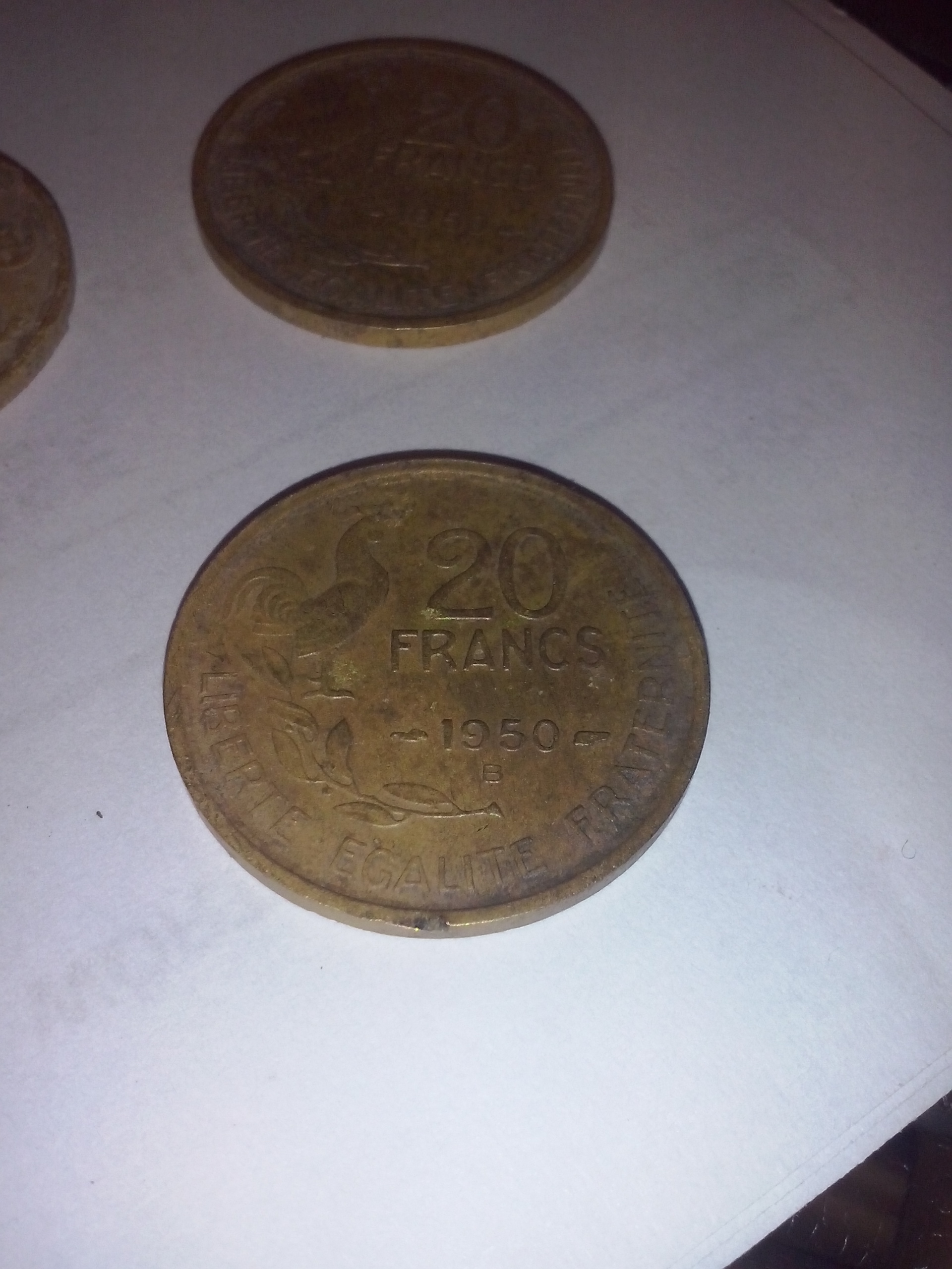 Gestern habrn wir 3 münzen gefunden 20france von 1950 mit dem zusatzzeichen "B"