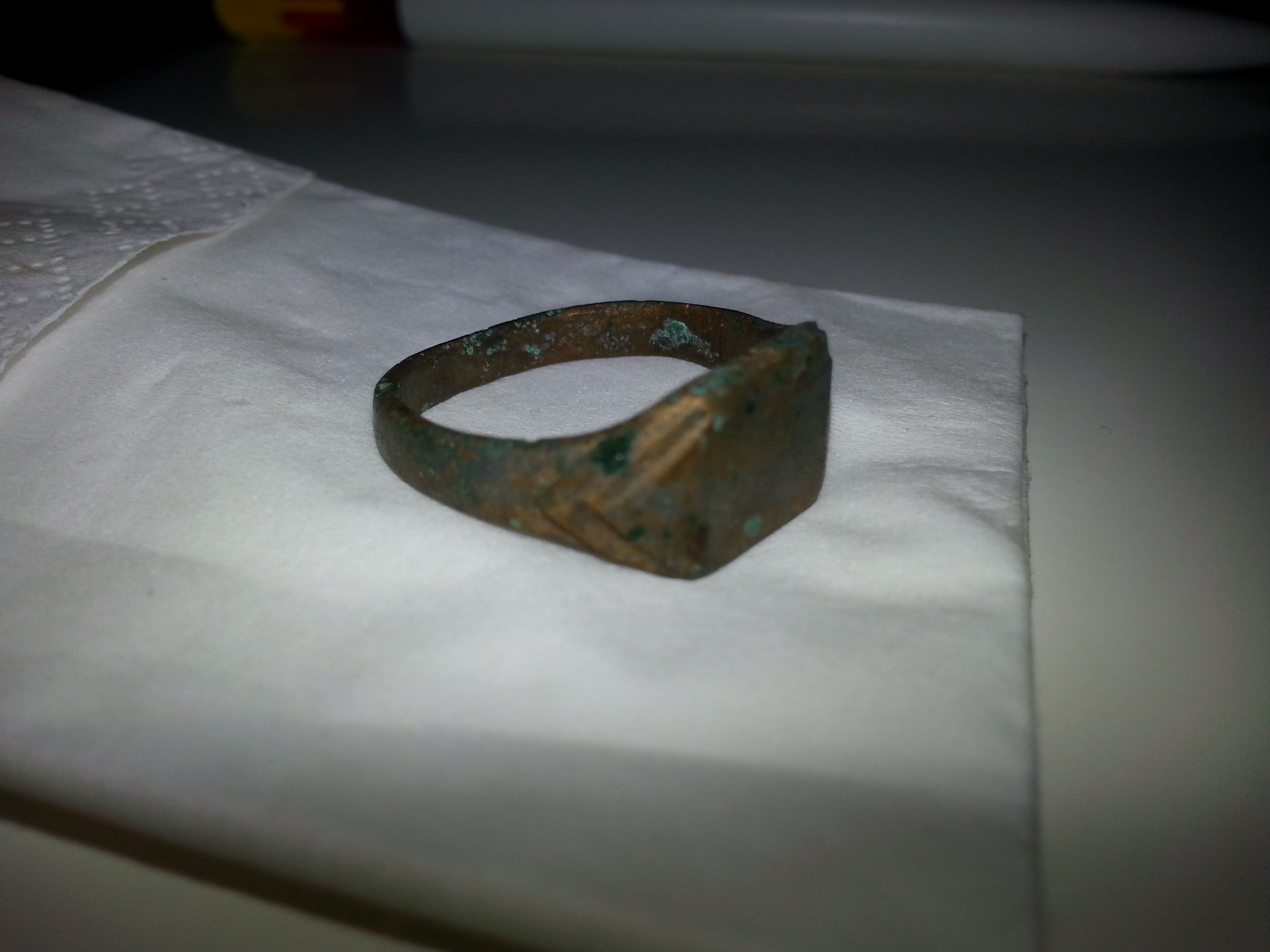 Aber der Ring gibt mir Rätzel auf. Sieht aus wie ein Männerring.Wirgt ca 5 gramm... Beidseitig die von klein bis gröser werdende dreicke. Aber keine Innschrift oder Ähnliches...