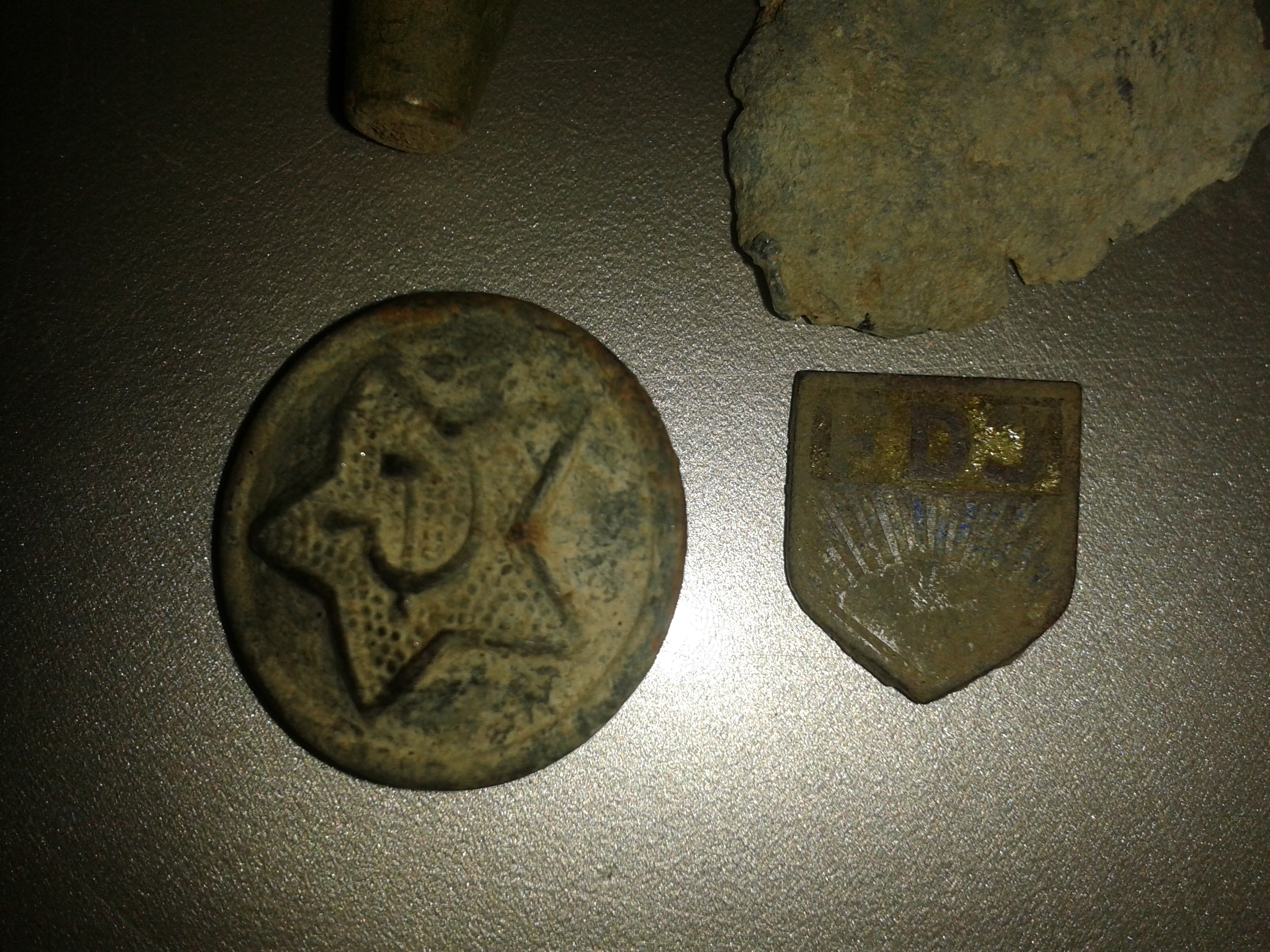 Dann mein erster Russenknopf, hab mich gefreut und ein abgebrochenes Abzeichen von der FDJ, das hatte ich auch noch nicht.