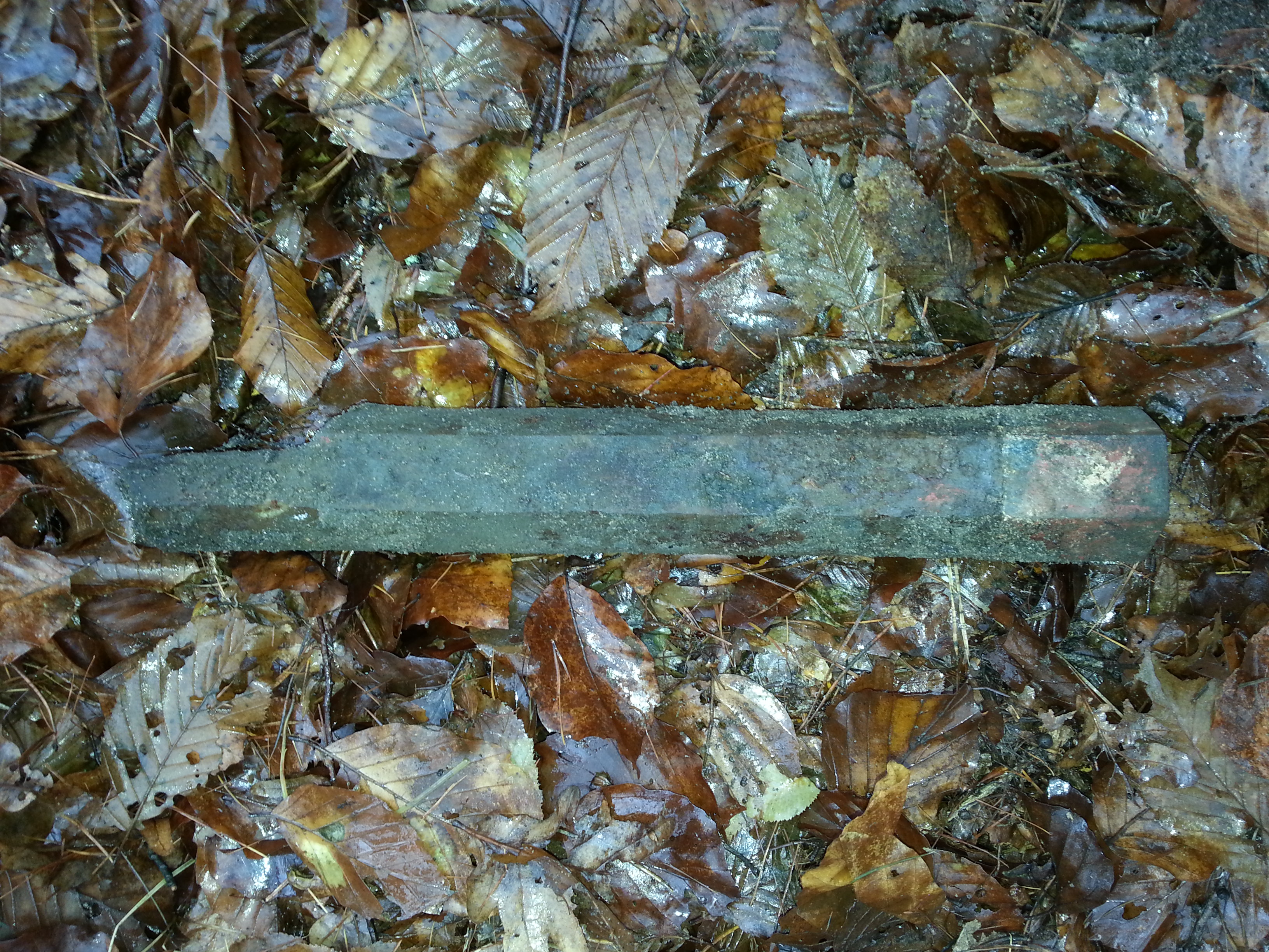 Ich bin mir echt sicher das dass ein Fragment einer Stabbrandbombe ist das Ding sollte ungefährlich sein.habt ihr Glück gehabt die Zünder von denen sind echt empfindlich :!: im inneren der Dinger ist ein Phosphorgemisch das in Verbindung mit Luft sofort entflammt.an einem Ende befindet sich ein Knopf-der Zünder -der ca.2 Zentimeter aus dem Zylinder ragt.die Hülle sollte aus Beton sein!