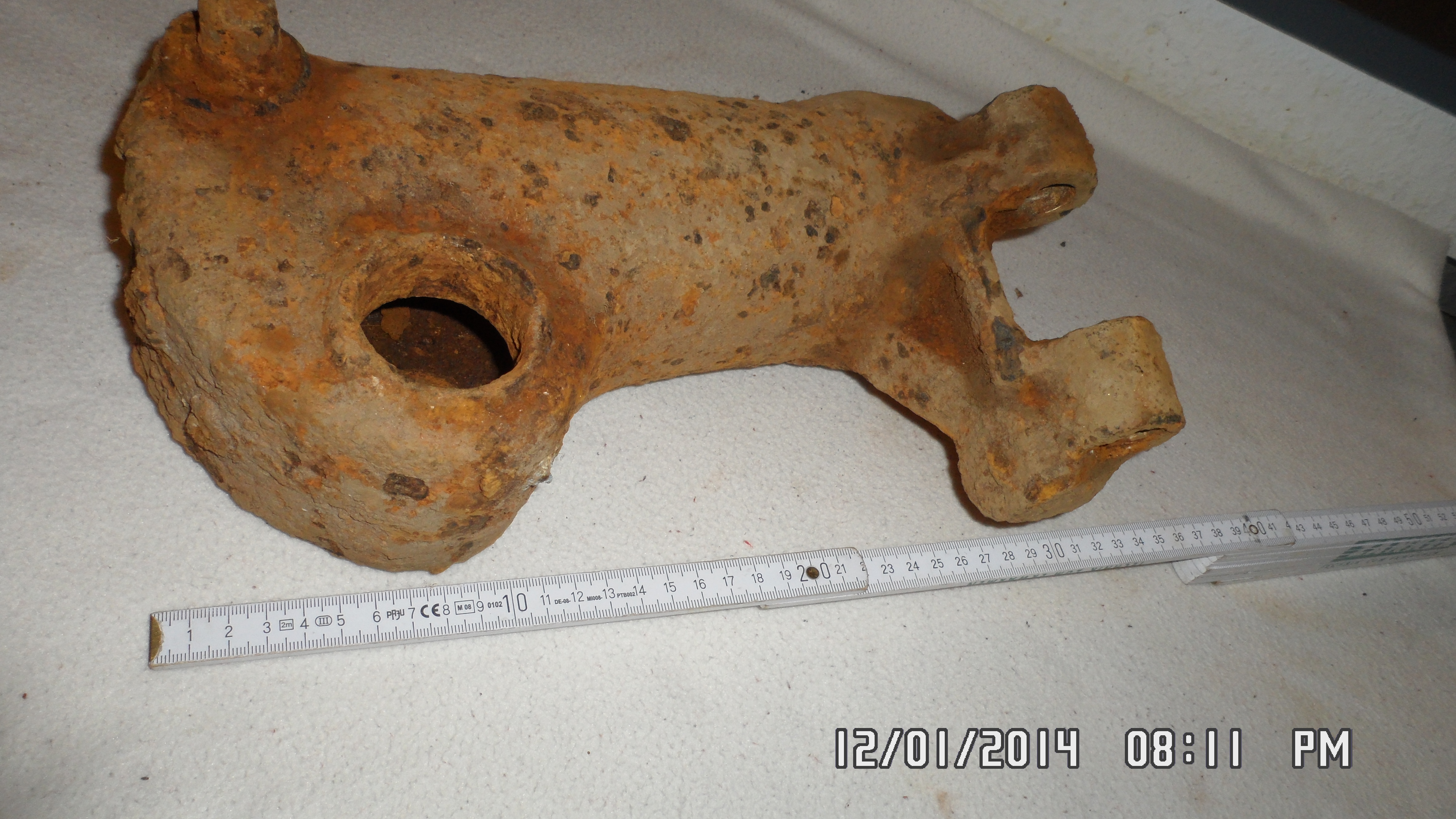 Was könnte denn das größere sein? Irgendein Maschinenteil. Es scheint Eisen zu sein. Aber wie kommt das auf einen Acker in 40cm Tiefe?