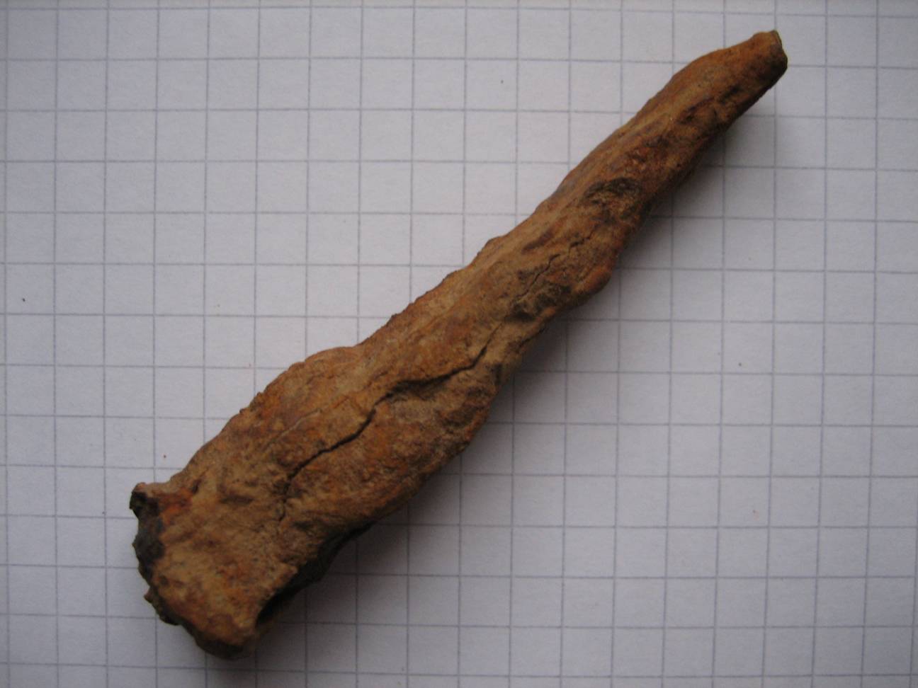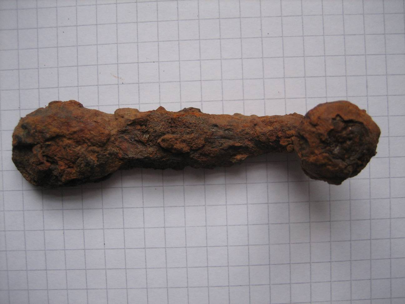 Und zu diesem Riesennagel... Gerade der würde mich ja interessieren. Wovon könnte der stammen bei der Größe? Und, sicher schwierig, aber kann man sowas zeitlich einordnen? Gleiche Fragen für die ersten drei Funde... Jaja, ich weiß, Anfänger ;)