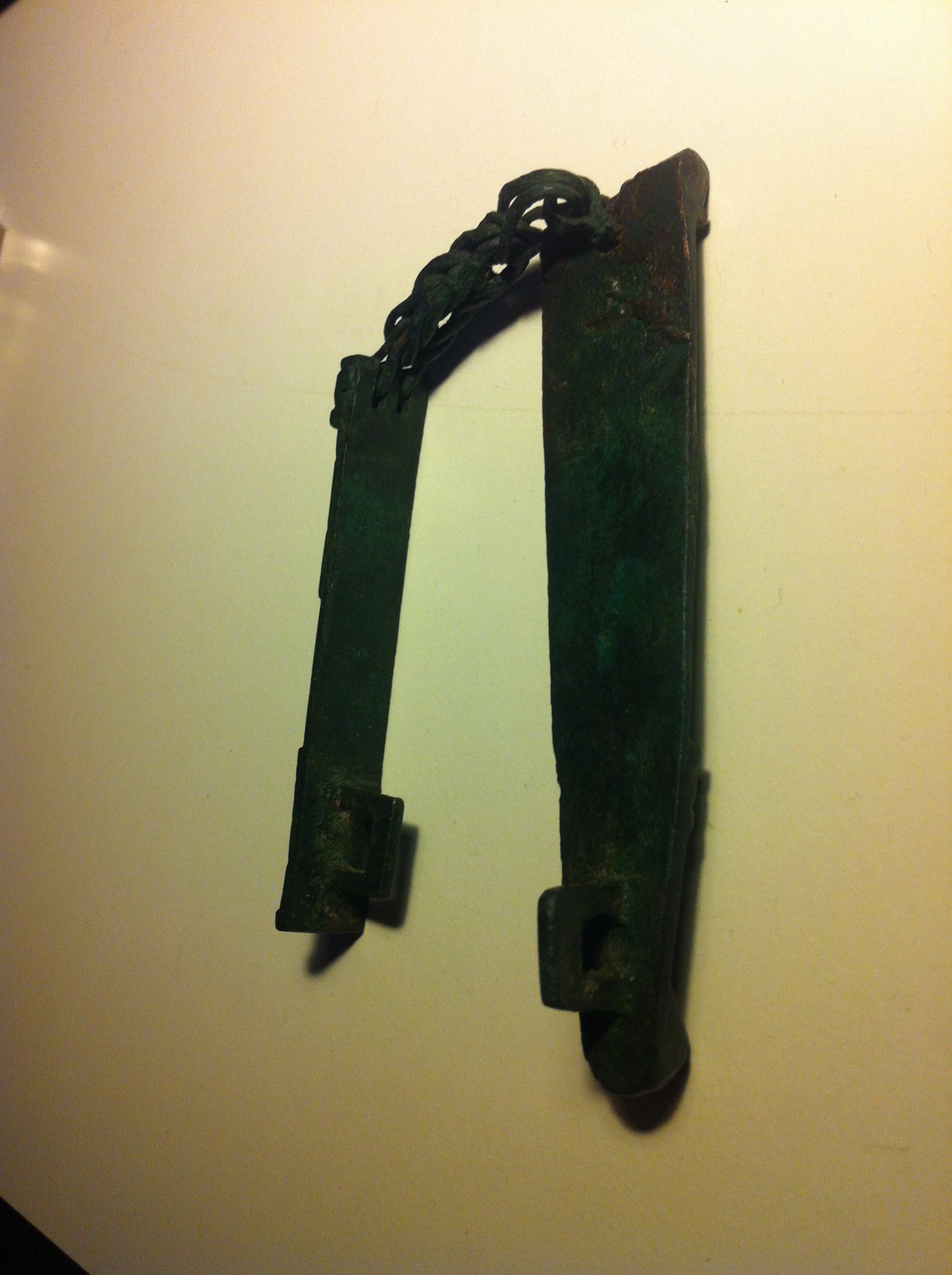 Habe ein UFO zu melden. Aufgrund der Bodenfunde und der Numismatik kann das Mittelalter gänzlich ausgeschlossen werden. Vermute so etwas wie ein Bucheinband/Verschluss um 346 nCH. Bin diesbezüglich aber absolut überfragt.