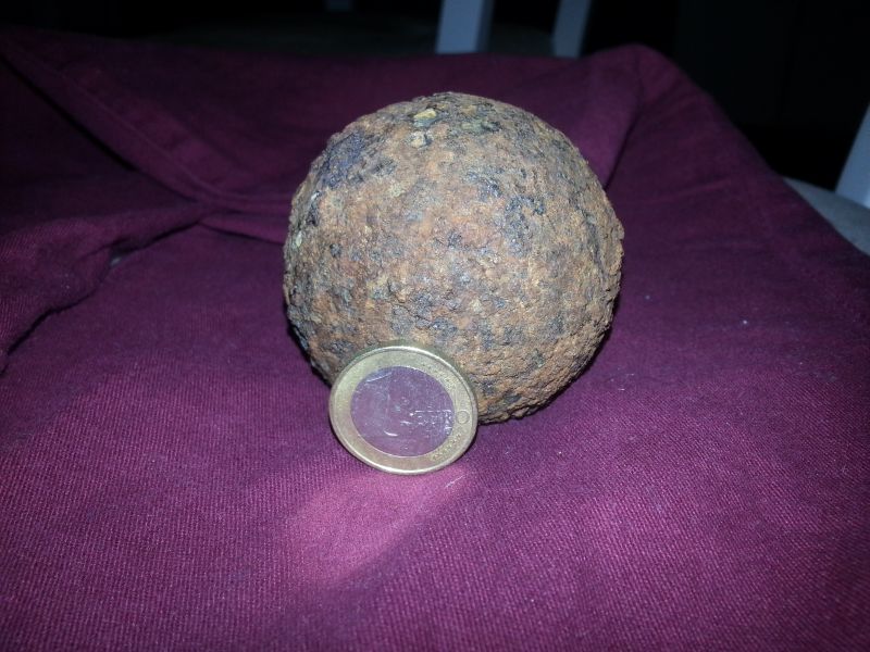 Habe mal in Internet geforscht und habe gelesen das 6 cm Durchmesser für eine Kartätsche zu groß sei und das es eher eine Kugel einer Falkonet Kanone ist.