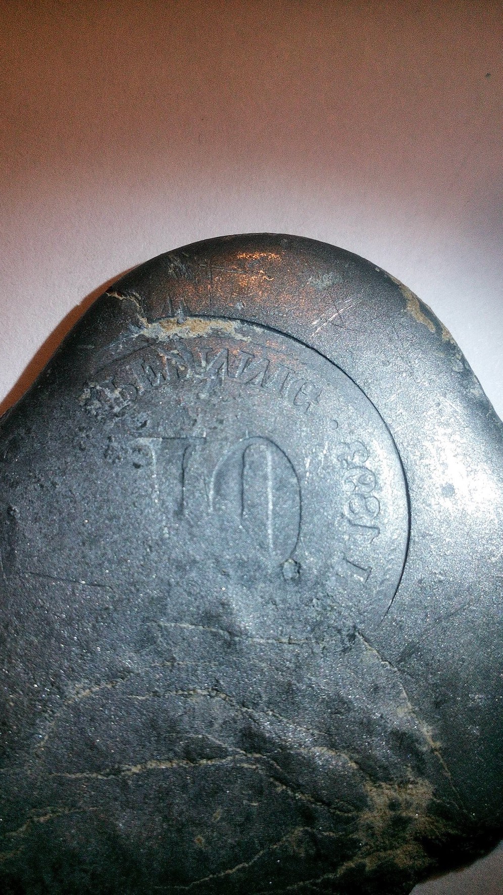 die Platte hat einen Abdruck einer 10 Pfenning Münze von 1893 sowas habe ich noch nie gefunden....