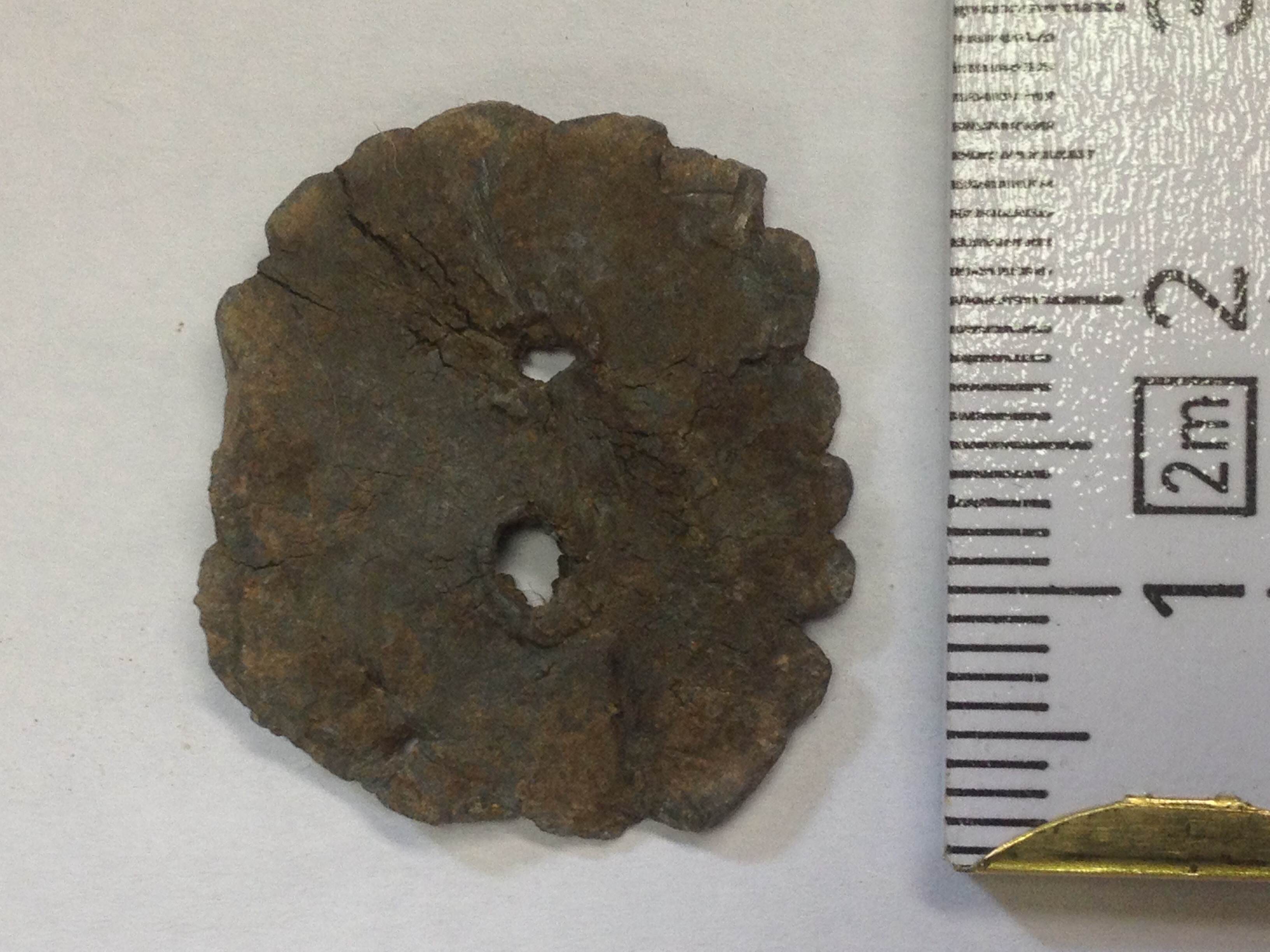 ( teil 2 ) ist aus blei und ca. 2cm lang. Keine Öse oder ähnliches zu erkennen. Gefunden hab ich es auf einem Musketenkugel-acker.