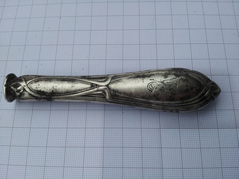 Das ist ein Messergriff, aber ich bin sicher das es kein Silber ist, sondern nur Silberauflage.