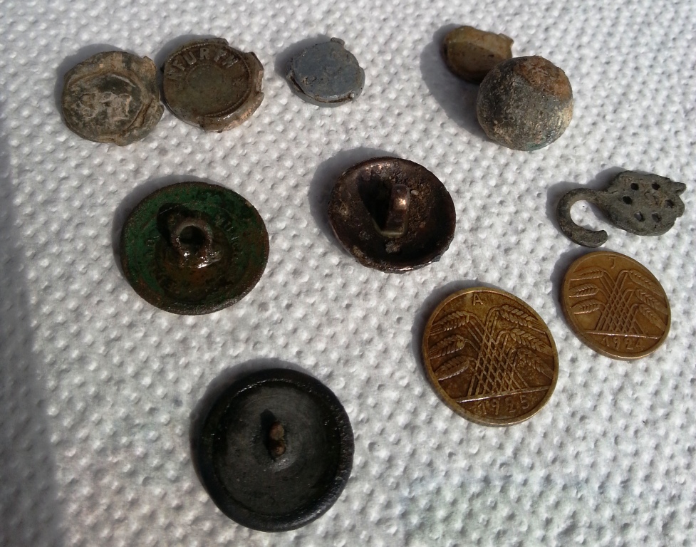 hier meine letzten Knopf und Plombenfunde und ein Miederhaken?
