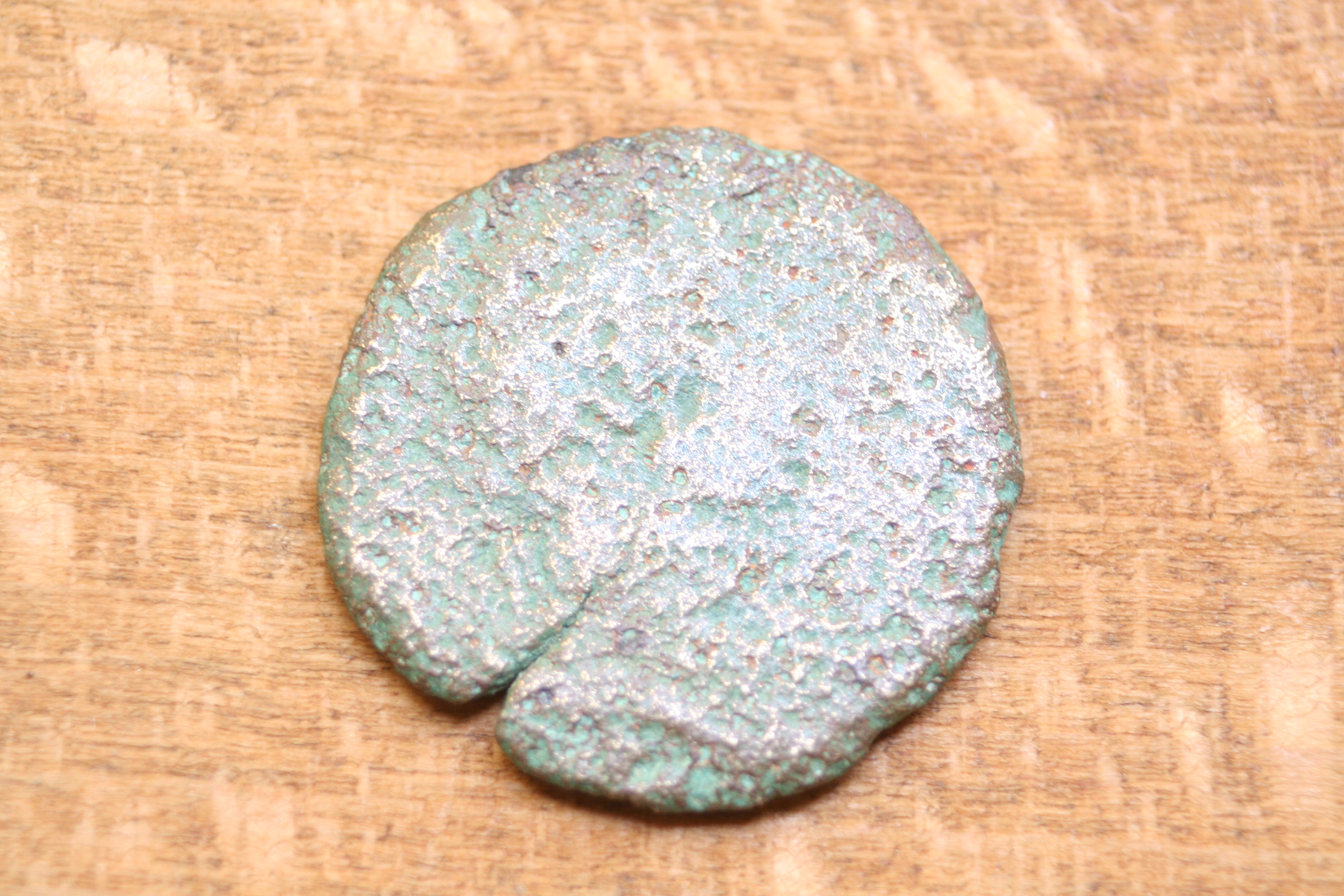 Leider kann man auf dem Römer nur noch schwach den Kaiserkopf erkennen und die Rückseite ist ganz vergangen.