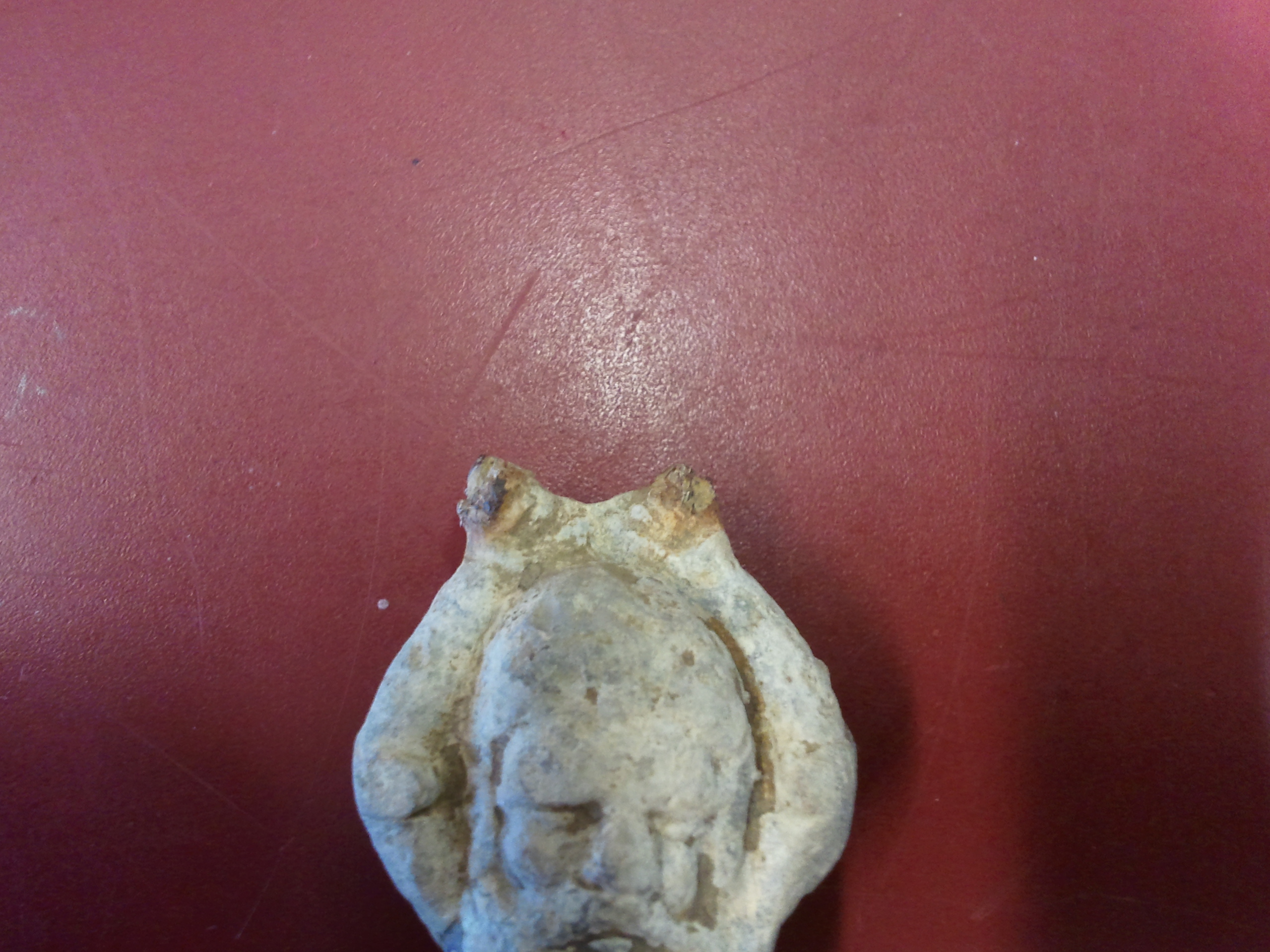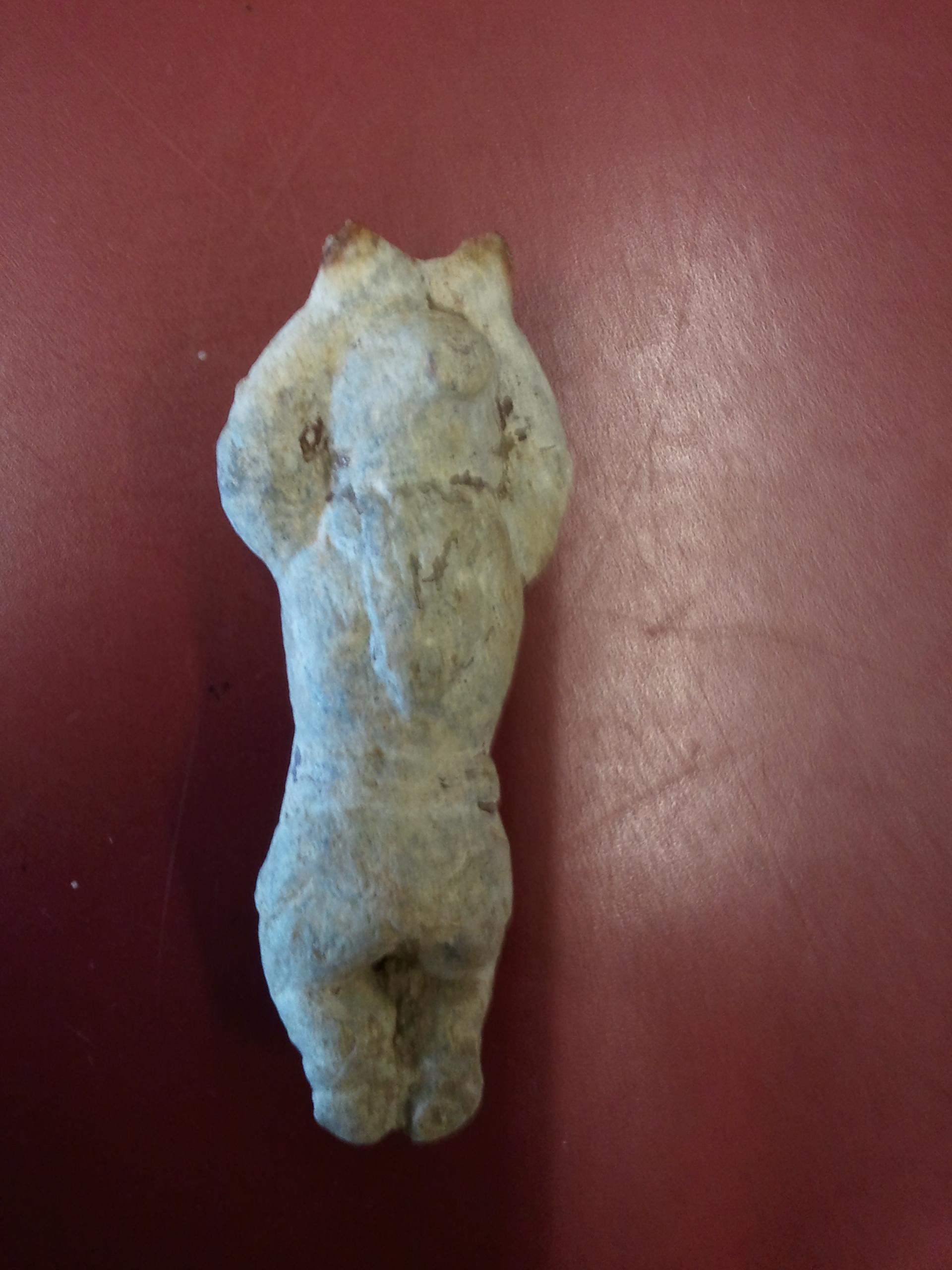 Es ist recht schwer...131gramm. Die Hände überm Kopf scheinen irgendwo dran gewesen zu sein, sieht abgebrochen aus. Ein Ring vielleicht? Die Füsse sind evtl ein wenig verbogen.