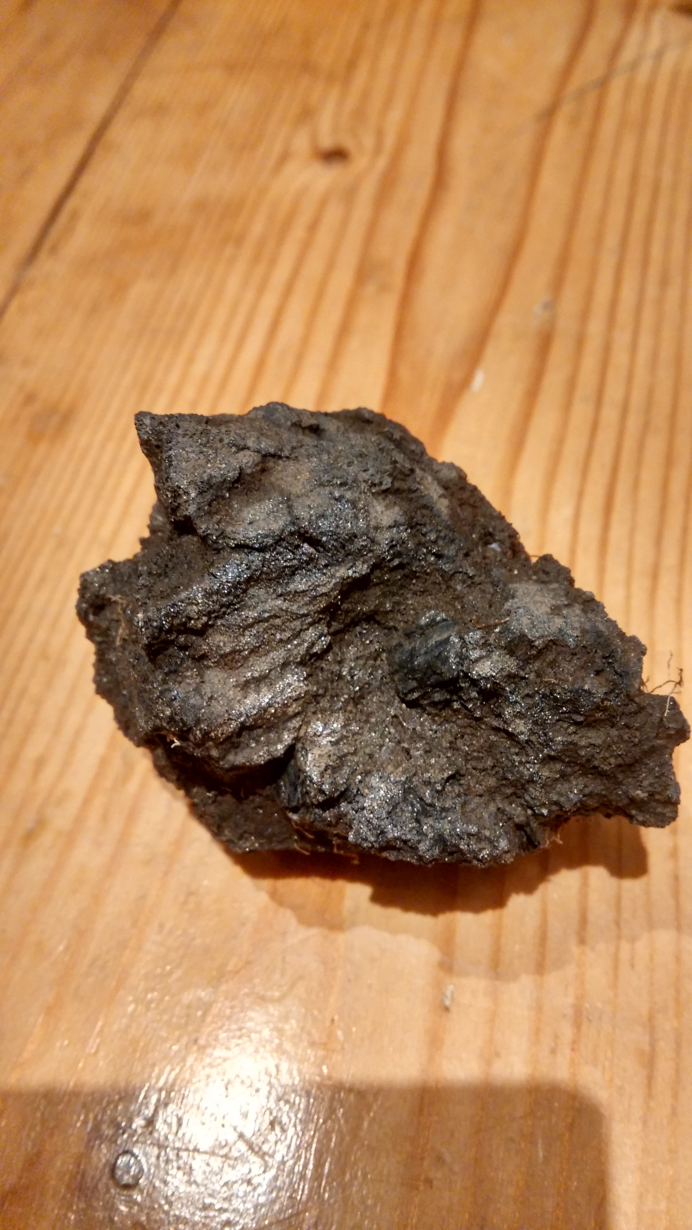 da mir die Zeit feht habe ich vorhin im Garten etwas gesondelt. In 35-40cm Tiefe fand ich dank Jehova einen recht leichten Klumpen. In dem Loch ist noch mehr, Jehova schlägt noch immer an. Mit der Taschenlampe kann ich eine gräulich-helle Schicht ausmachen, die nicht zum restlichen Erdreich passt.