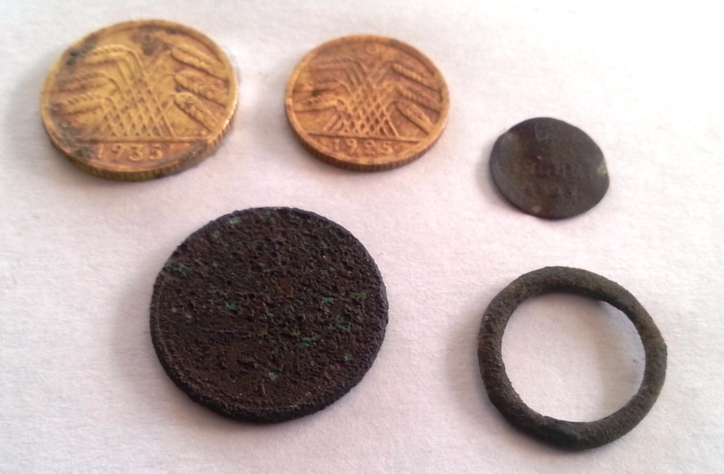 Hallo, hier meine Funde von gestern und heute, das defekte Glöckchen hatte sogar noch die Kugel im inneren, das Bruchstück fand ich ca. 5m entfernt.