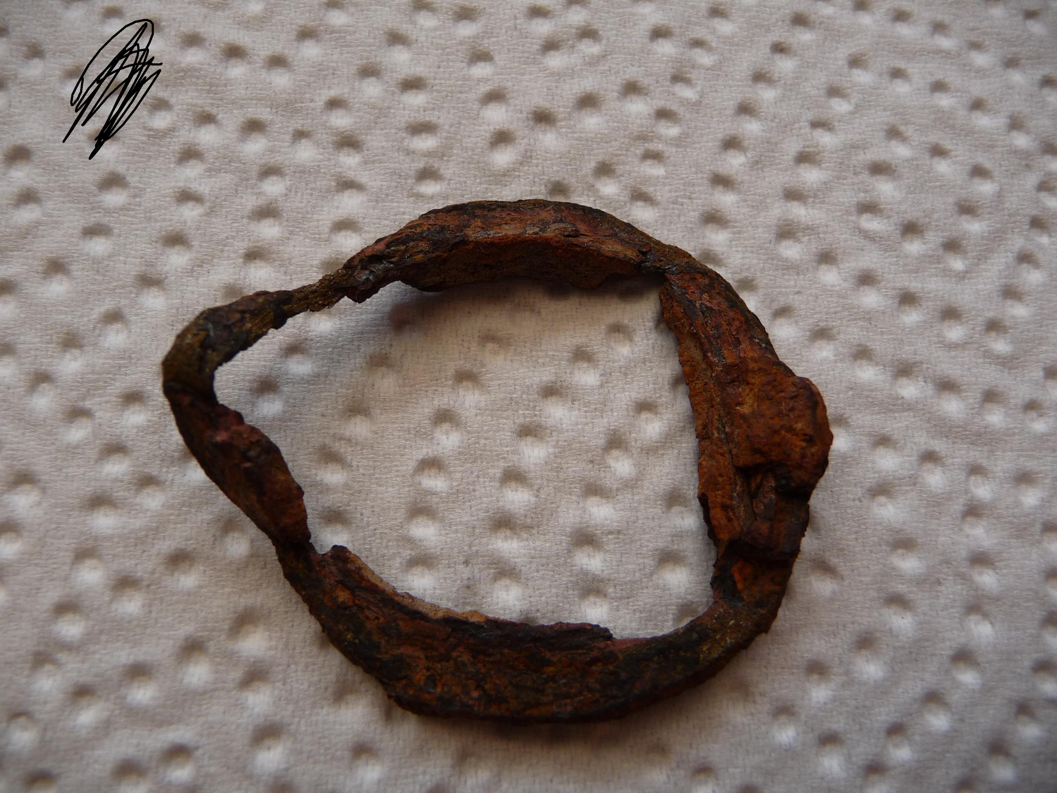 Ist das eine Ding ne Schnalle? Ist bisschen rostig. Andere Schnallen die ich gefunden hatte waren in besseren Zustand. Die scheint ja aus Eisen zu sein.