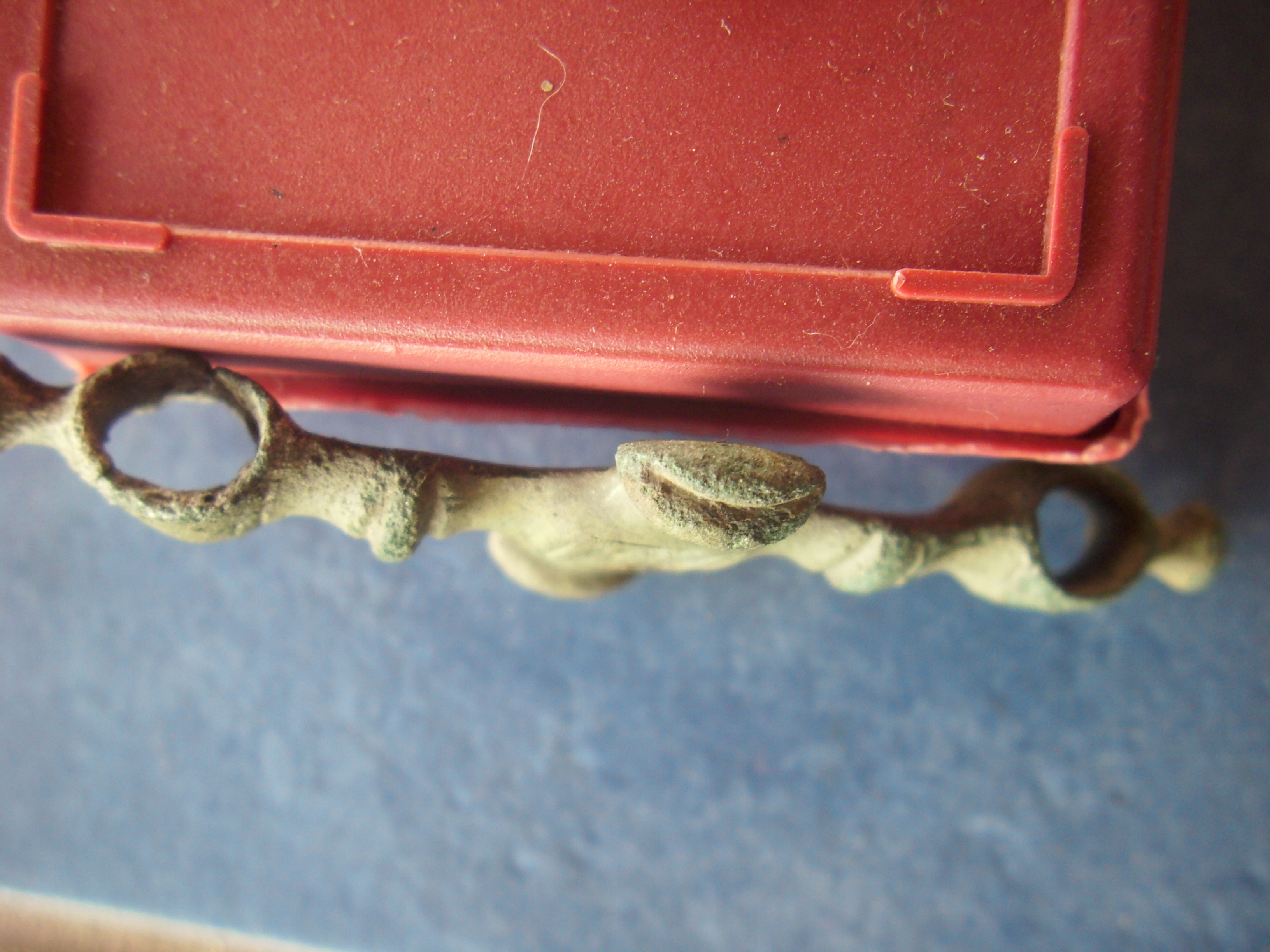 hätts nicht diese seltsamen Mittelfelder, würd ichs vom Aufbau glatt für spätlatene halten .....erinnert so von Grundform an gewisse Fibeln