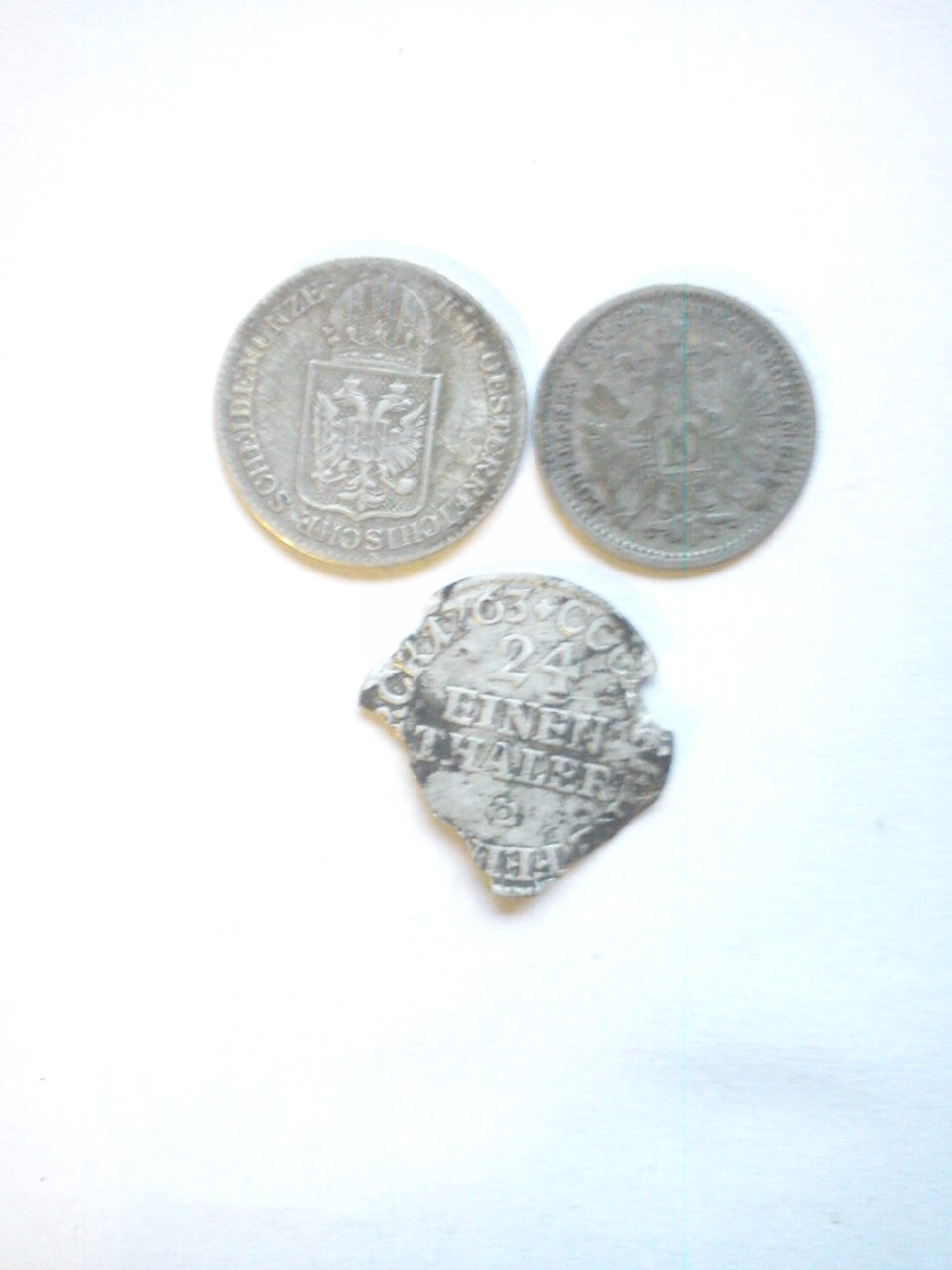 War mal wieder Richtung Grenze unterwegs und habe halbwegs gute Funde gemacht. Heute war es dann soweit. die erste sächsische Silbermünz kam zum Vorschein.Leider arg mitgenommen. Dafür sind die 2 östereichischen Silberlinge noch recht gut.Anders rum wäre mir aber lieber gewesen.