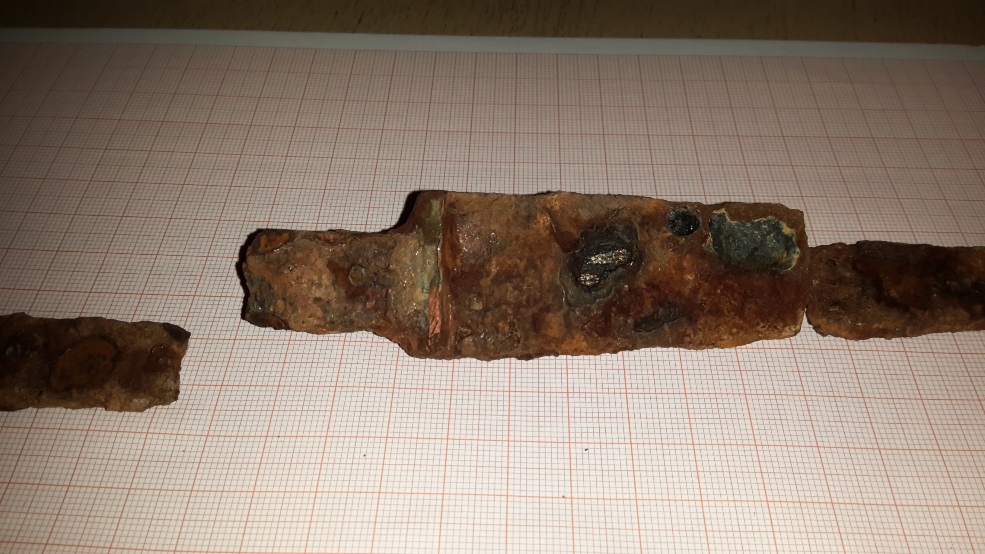 aufgrund der doch recht massiven Substanz würde ich jetzt fast zu einer Elektrolyse übergehen oder habt ihr eine bessere Idee ? Ich werde mich an der stelle auch nochmal umschauen und vllt liegt die spitze ja noch irgendwo rum. War schon dunkel als das Teil raus kam.