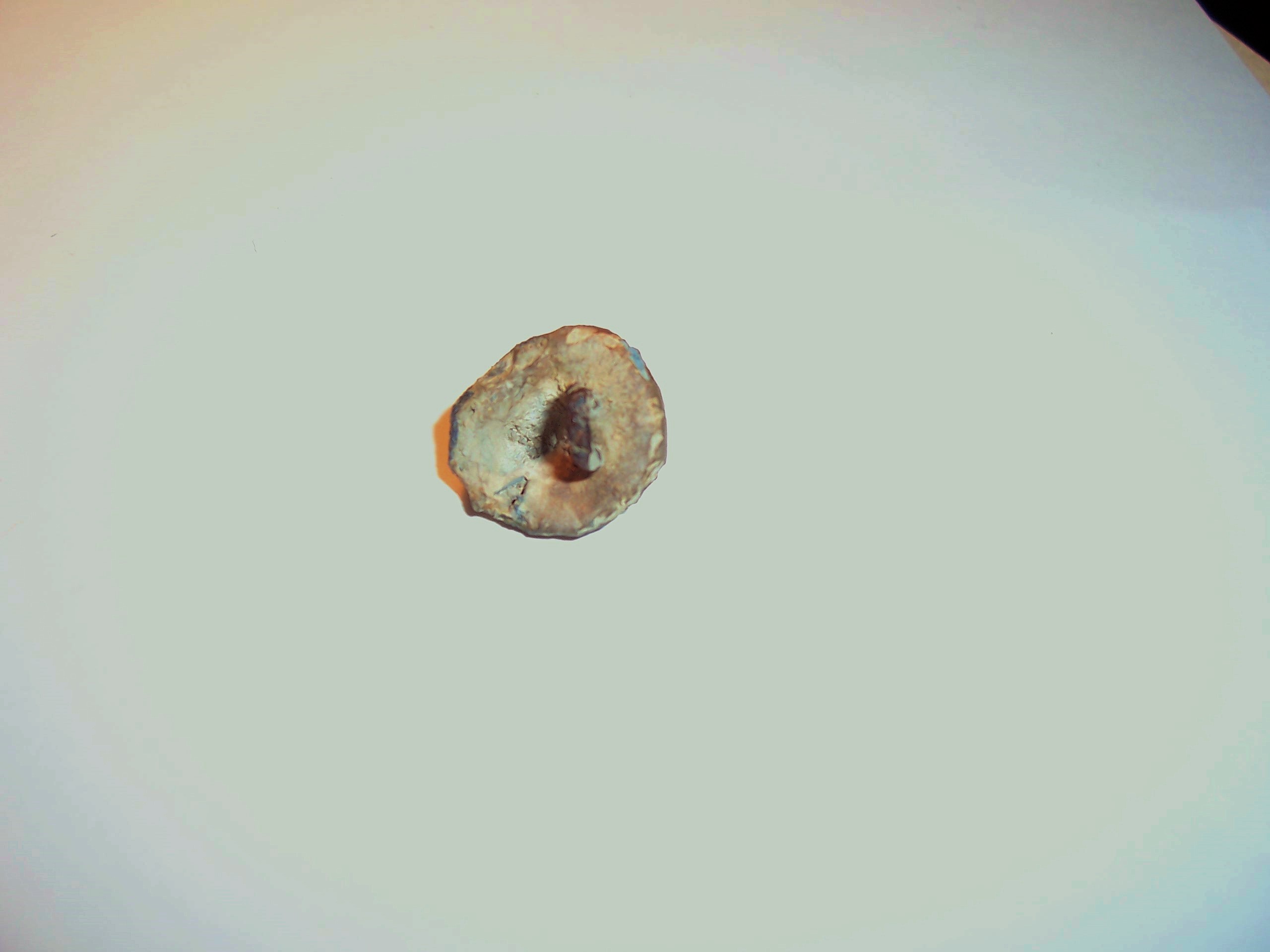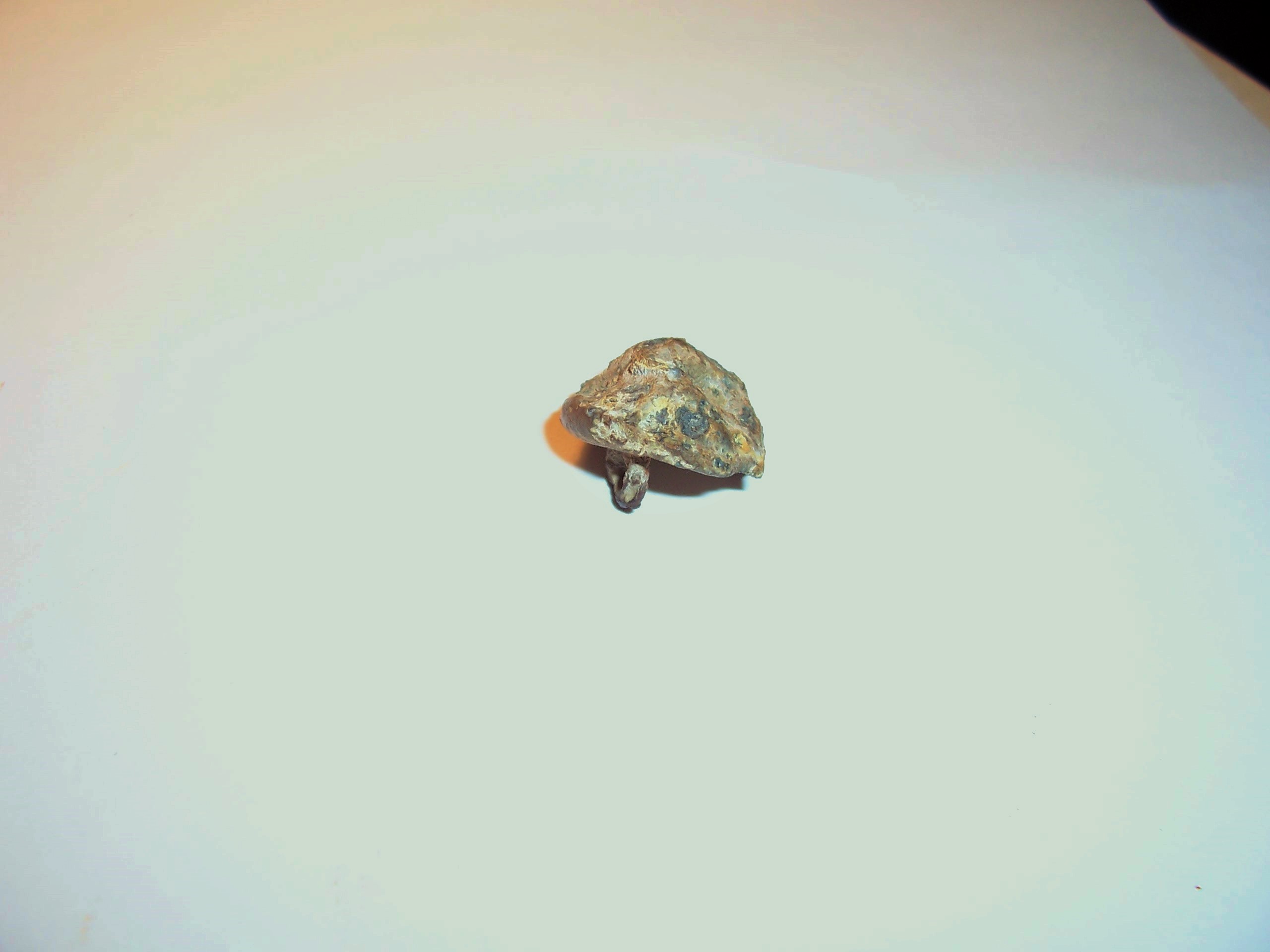 Rückseite hell bis bräunlich--so wie viele Musketenkugeln ausschauen, NUR die Öse ist aus Eisen und völlig ausser Mitte, Vorderseite total zerfressene, bucklige Mondlandschaft aus vermutlich Blei:?