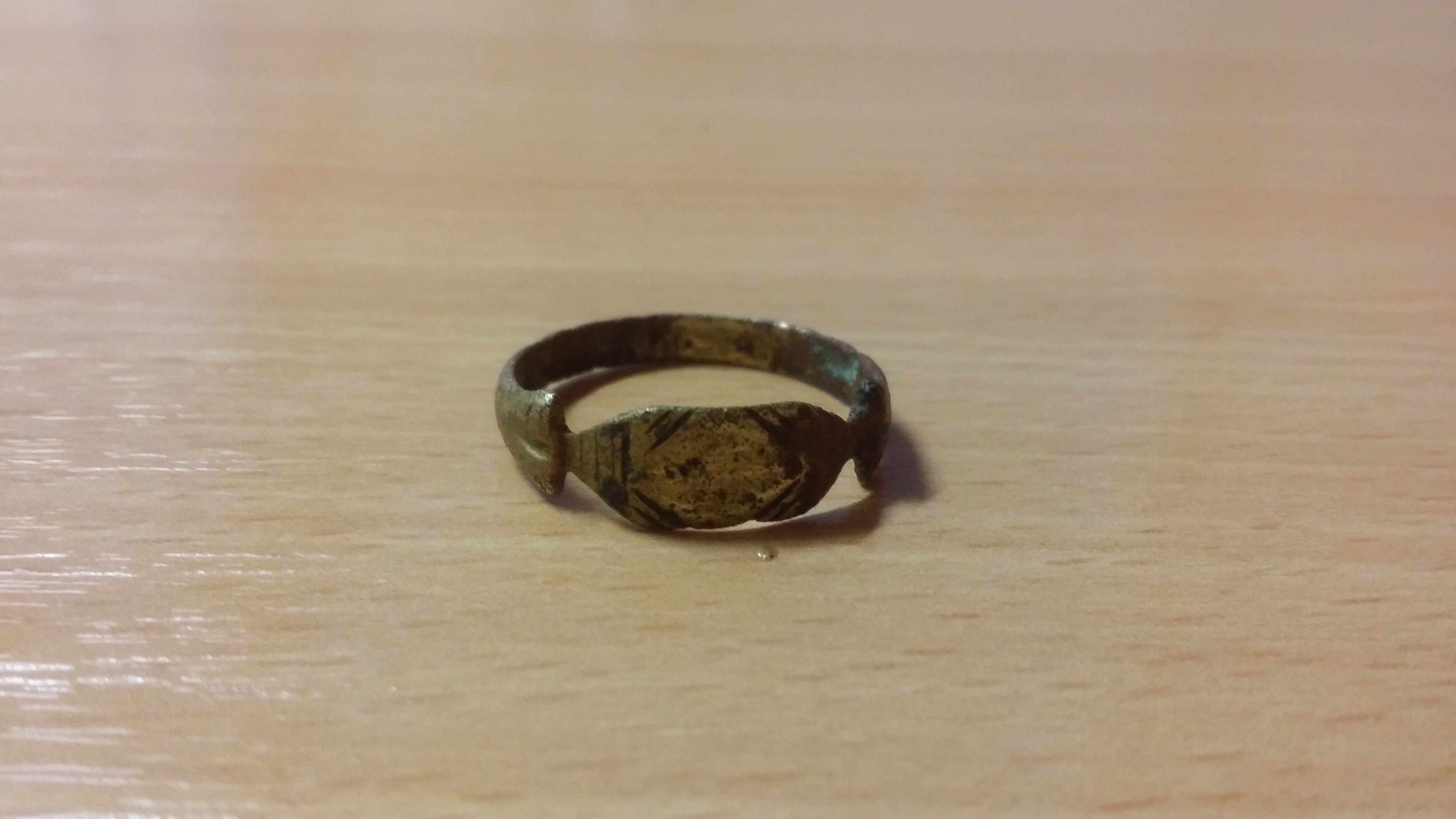 Innen hat er eine Inschrift mit einigen Buchstaben.