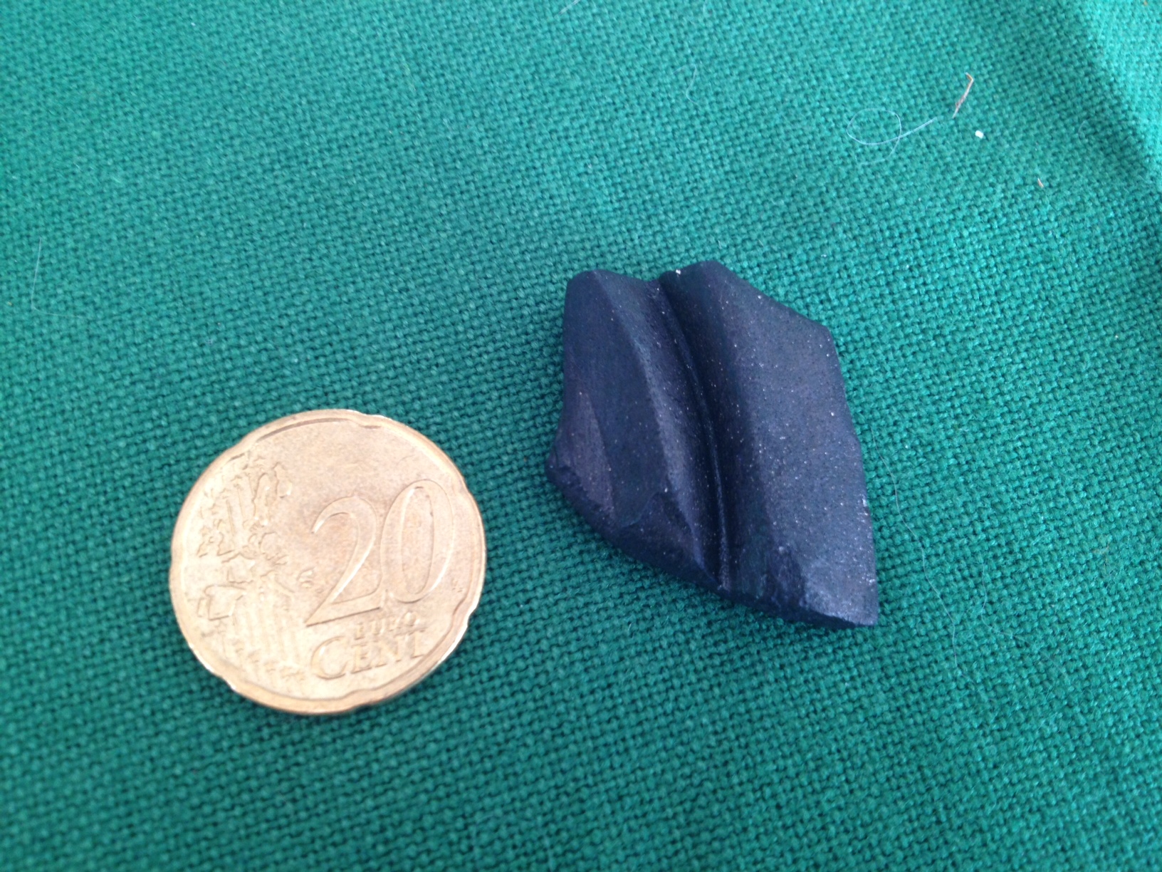 Ich kann das Material leider nicht bestimmen, aber sieht für mich vom Mensch gemacht aus. Vielleicht ein Stück von einer Schale oder einem Topf?