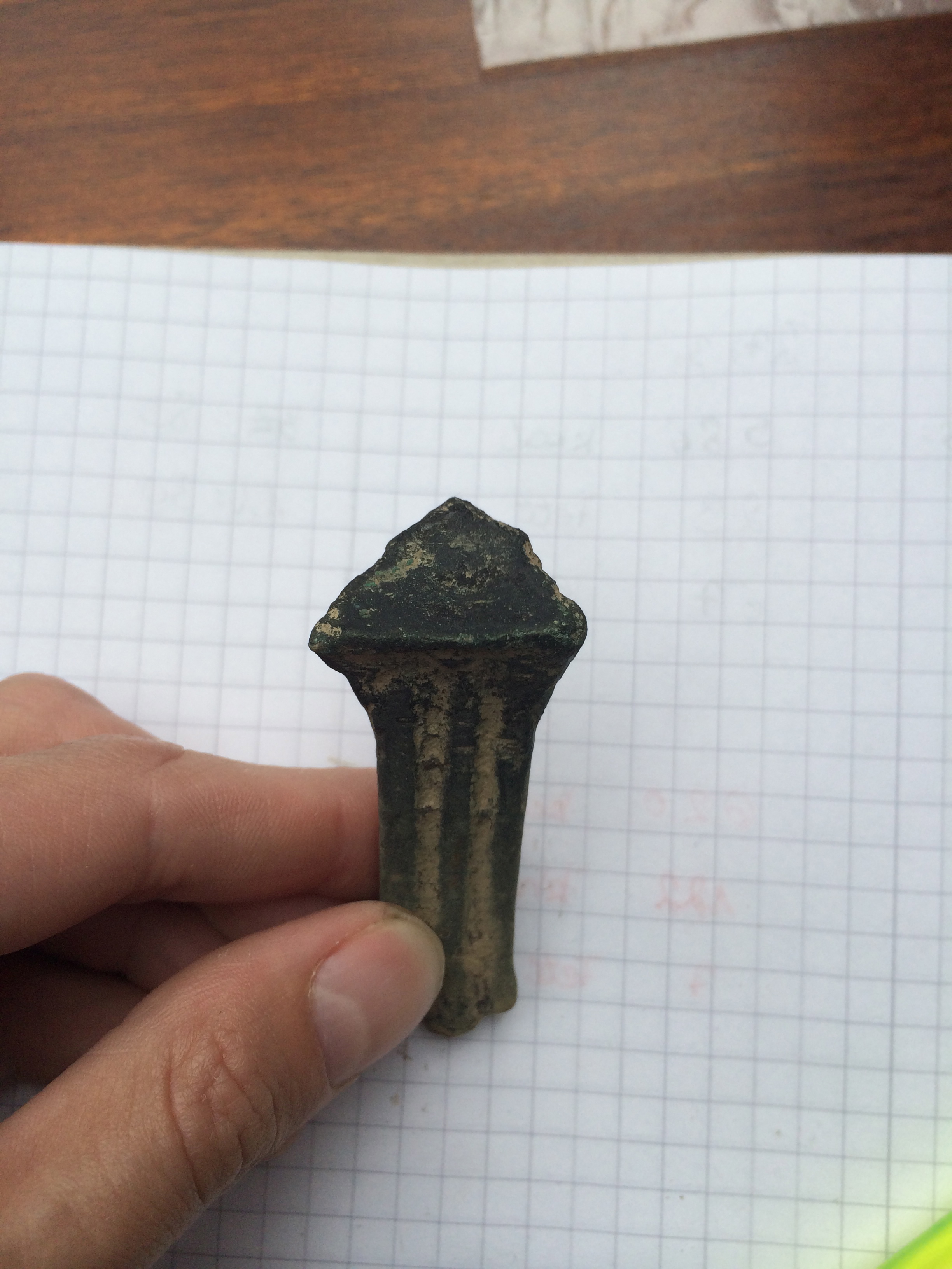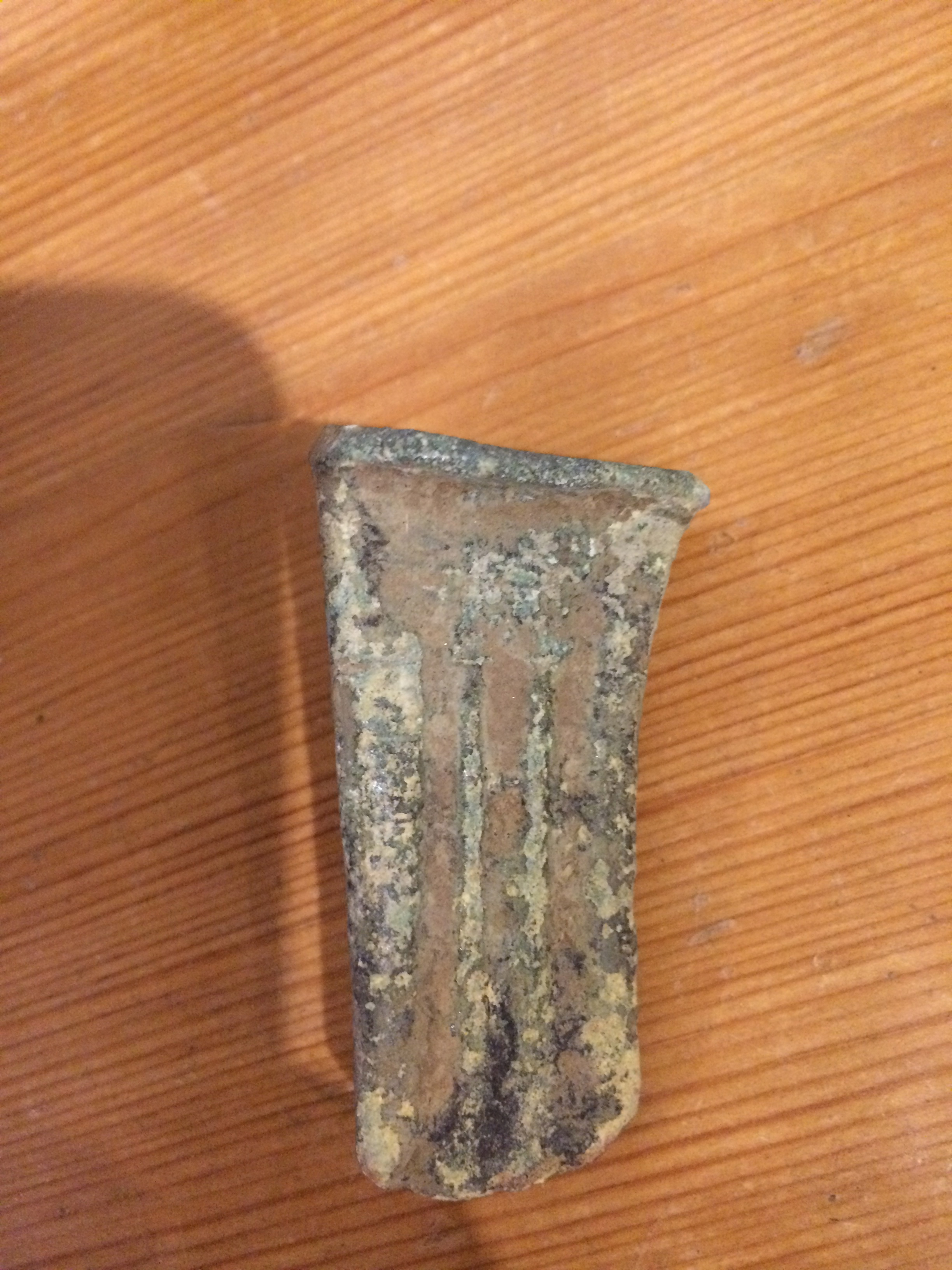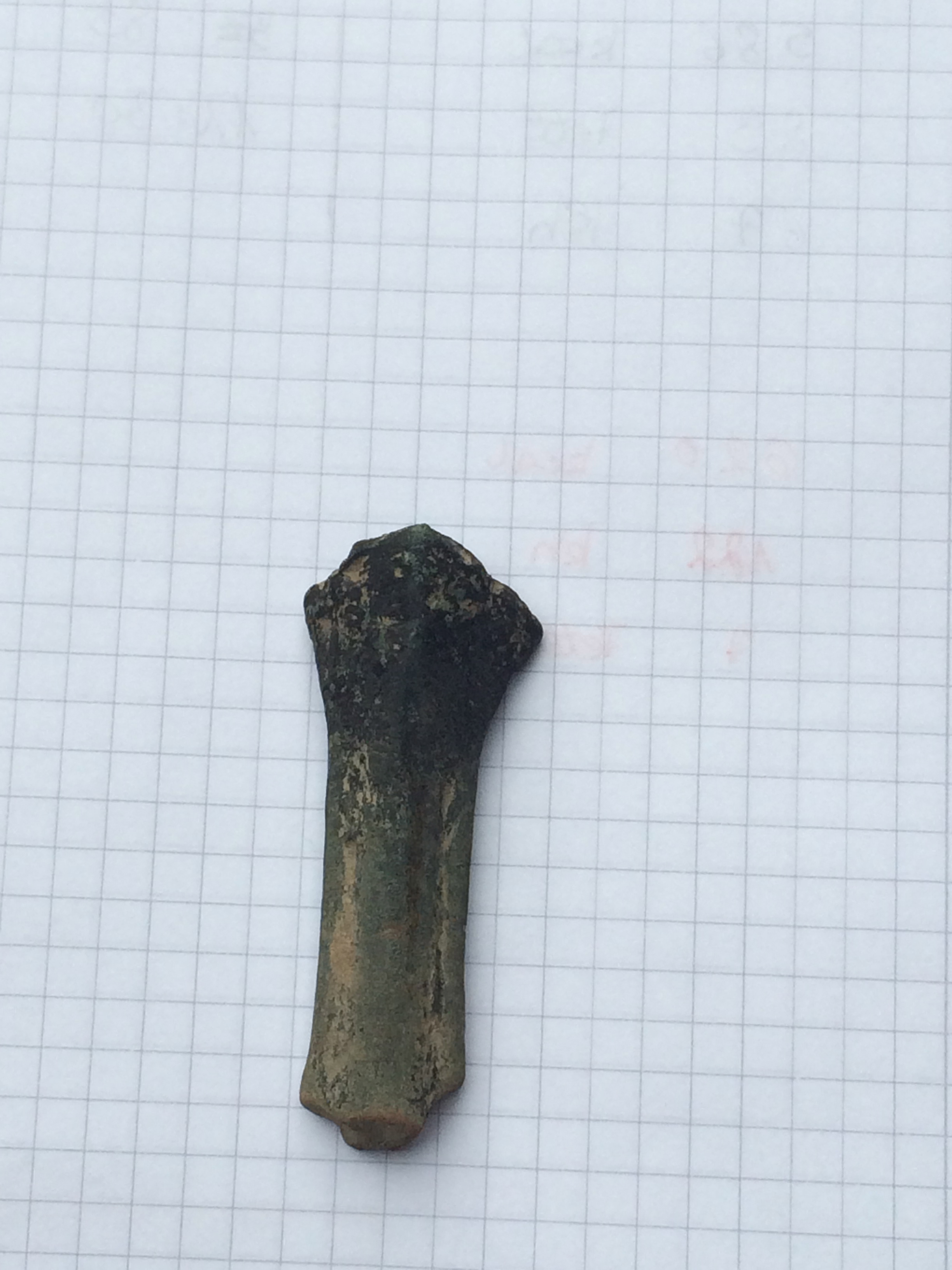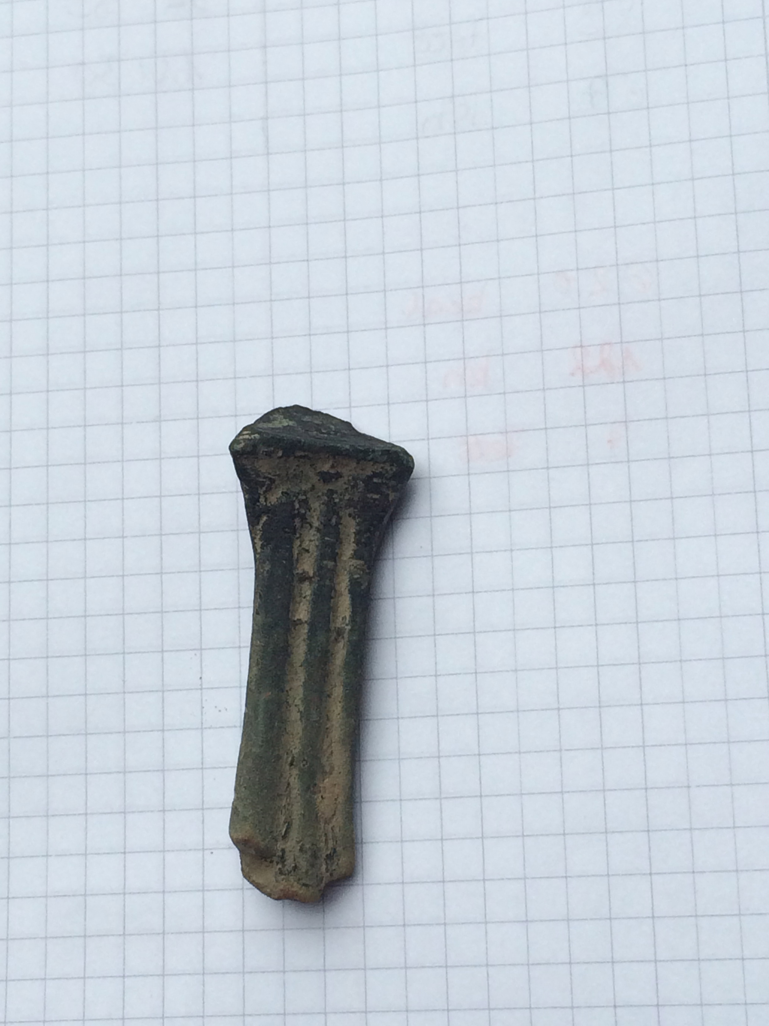 Kann mir jemand bei der Bestimmung dieses Objektes Helfen ? Es ist aus Bronze und etwa 2,5 breit und 6,5 cm lang.