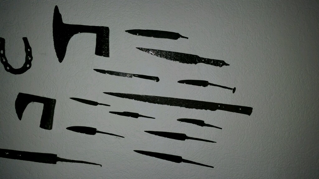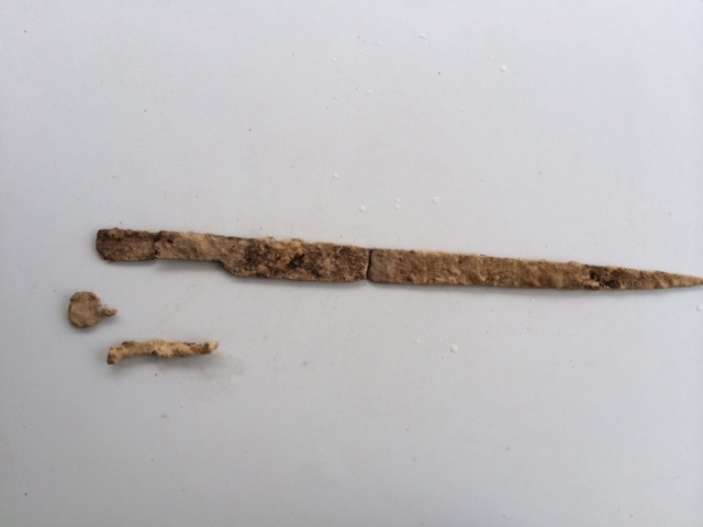 Ich vermute mal , das längliche Teil diente als Handschutz? Aber das Runde, keine Ahnung