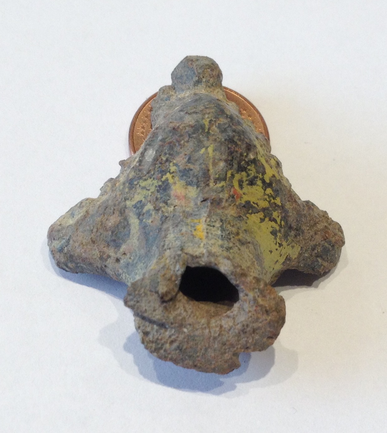 Ich sehe da keinen Kopf, denke eher dass es ein Fuß eines rechteckigen Gefäßes sein könnte. Bild 3= unverzierte Innenseite