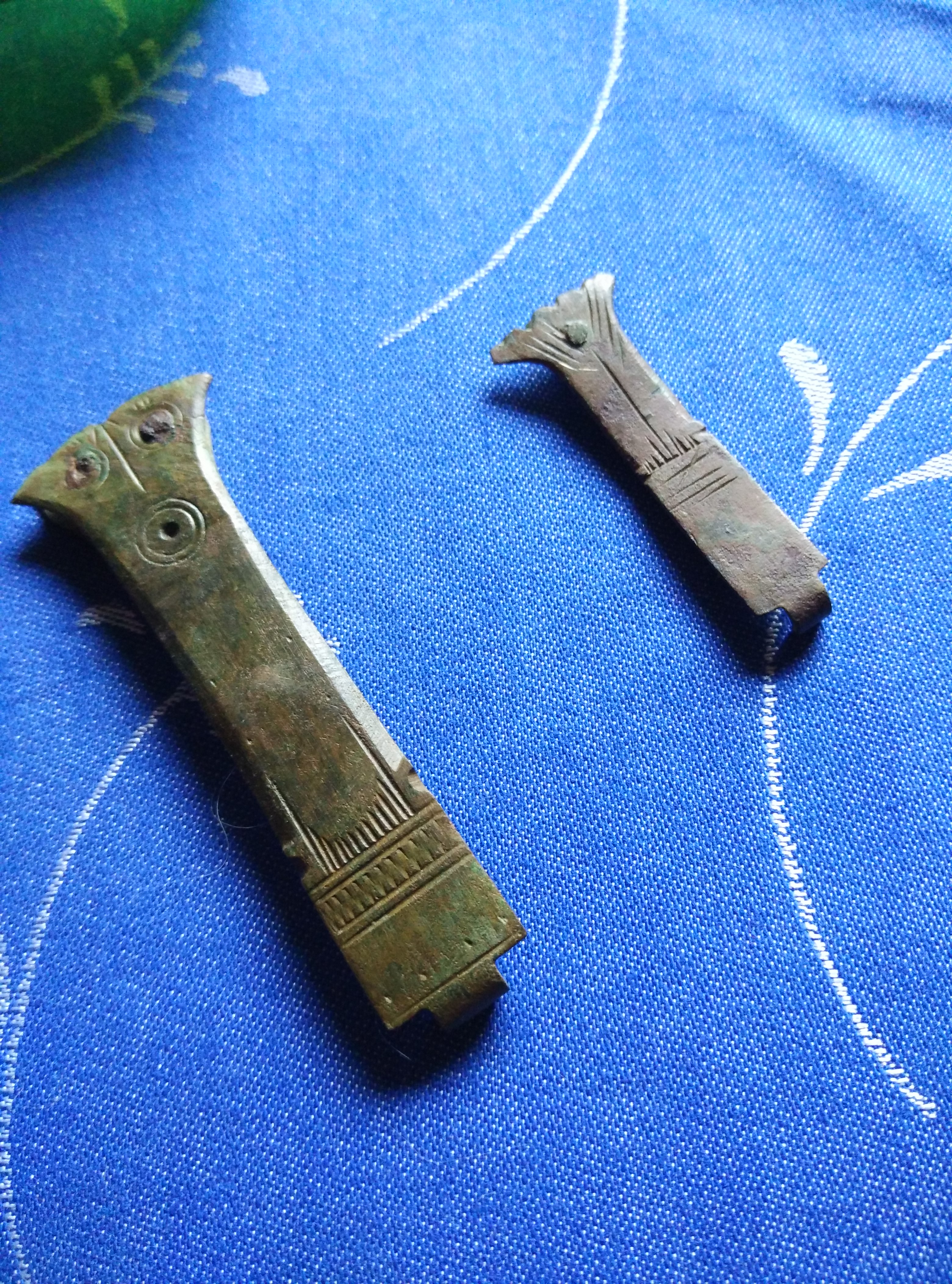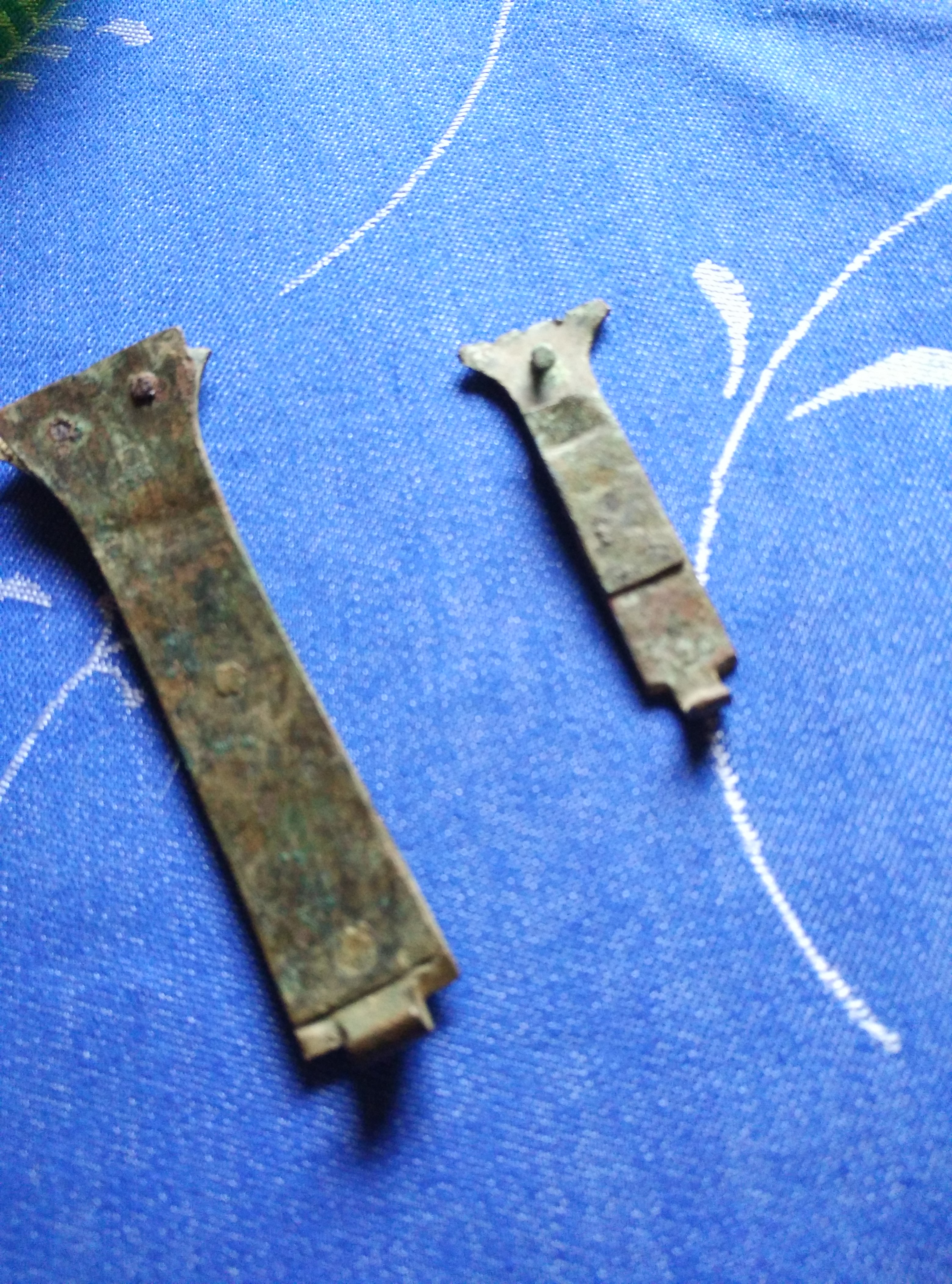 Und halt drei Buch Verschlüsse, ich habe nur noch zwei. Ich glaube den goldenen habe ich damals nicht zurück bekommen. Wir haben es damals dem Museum, neben dem die Ausgrabungen waren, gezeigt. Die Archäologen waren suuuuper sauer das sie die weggeworfen haben. Meine Eltern haben sich damals für mich eingesetzt, so konnte ich meine "schätze" behalten.
