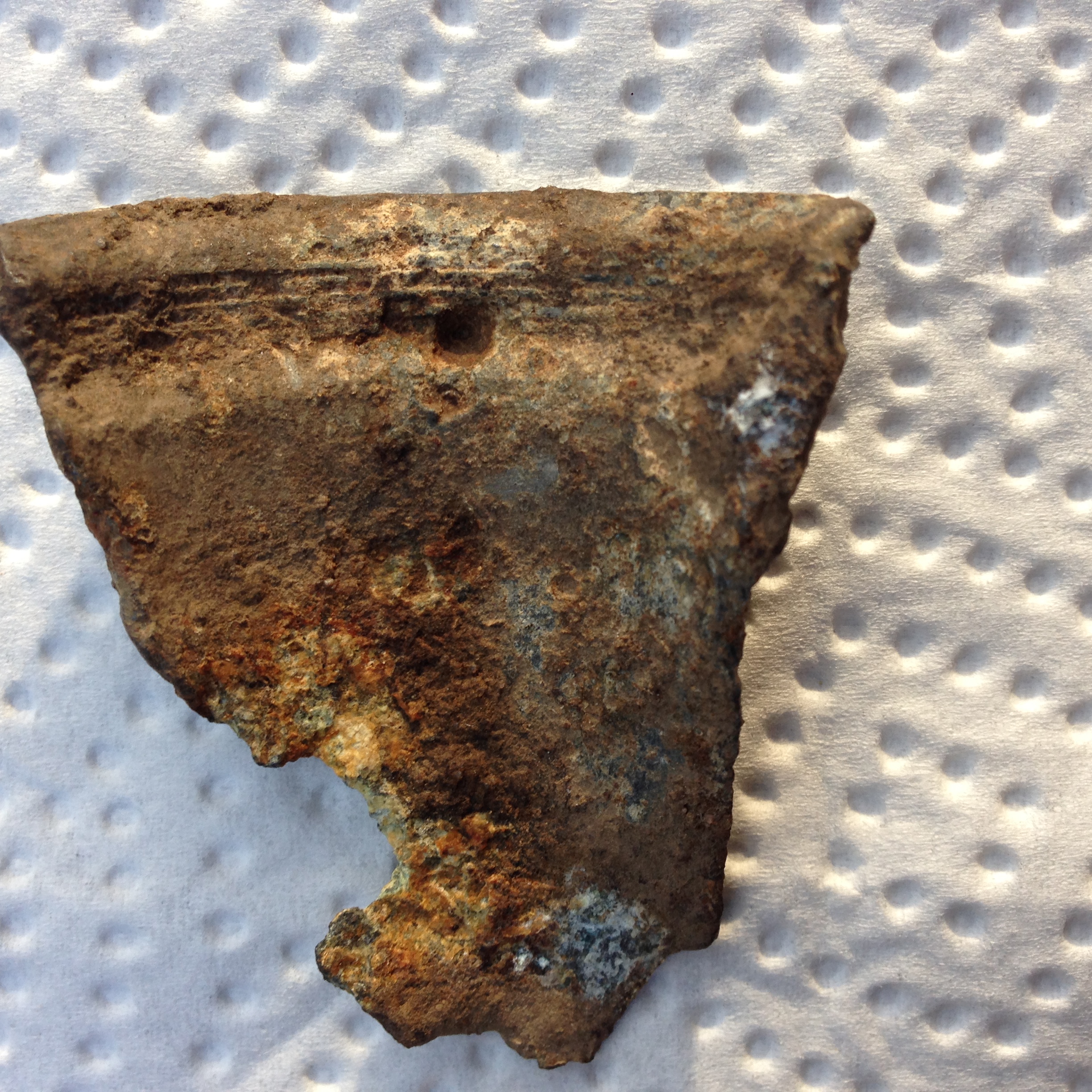 Sieht nach lange im Boden gelegenem Alu aus u. könnte ein Bruchstück einer abgeschossenen (u. i. d. Luft explodierten) Maschine sein.