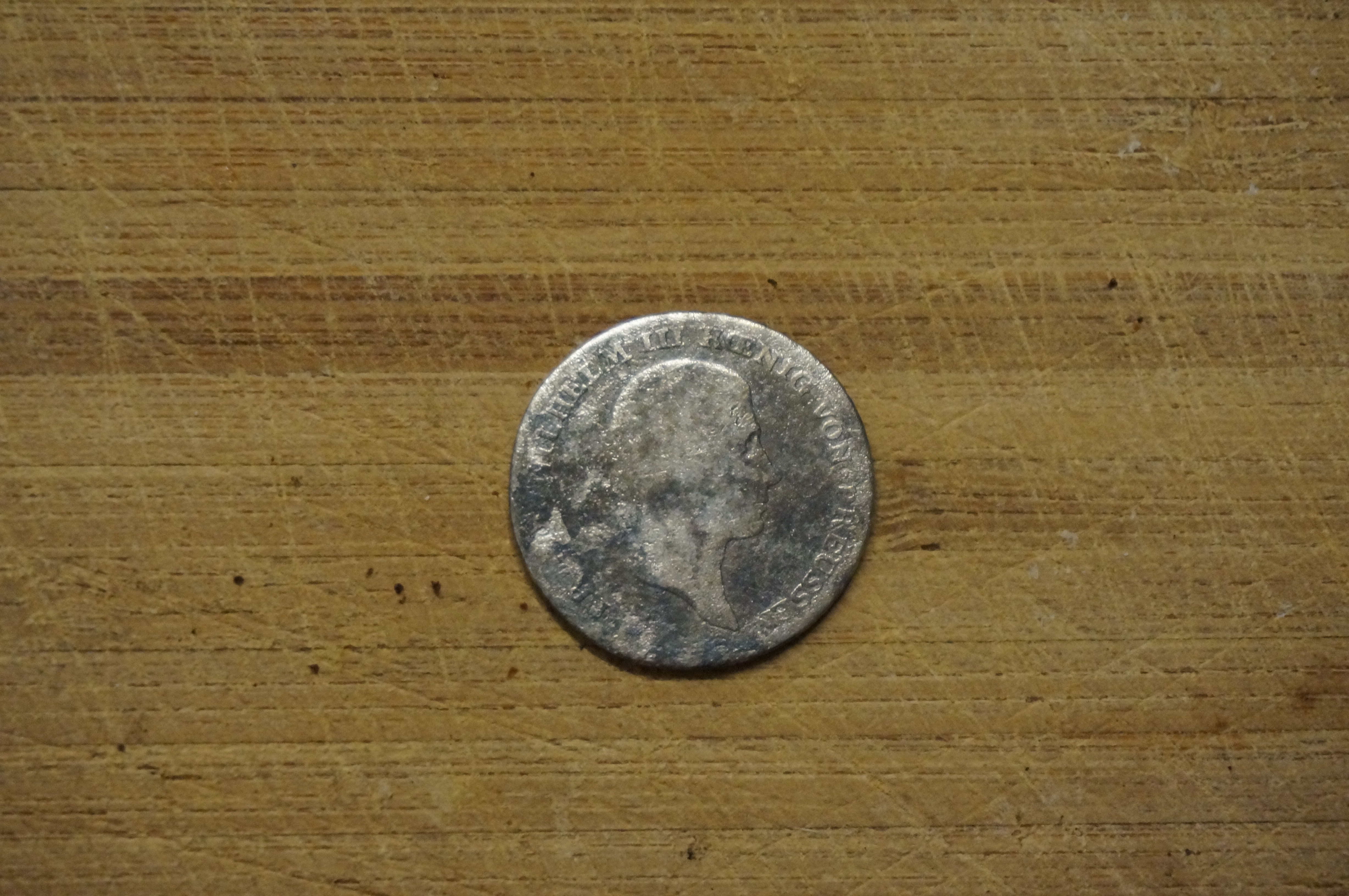 Möchte euch mal wieder etwas zeigen. Auf der großen Münze steht : König v. Preussen. Auf der anderen seite der Münze ist ein laubkranz zu erkennen.wollte schon mit akku-pat