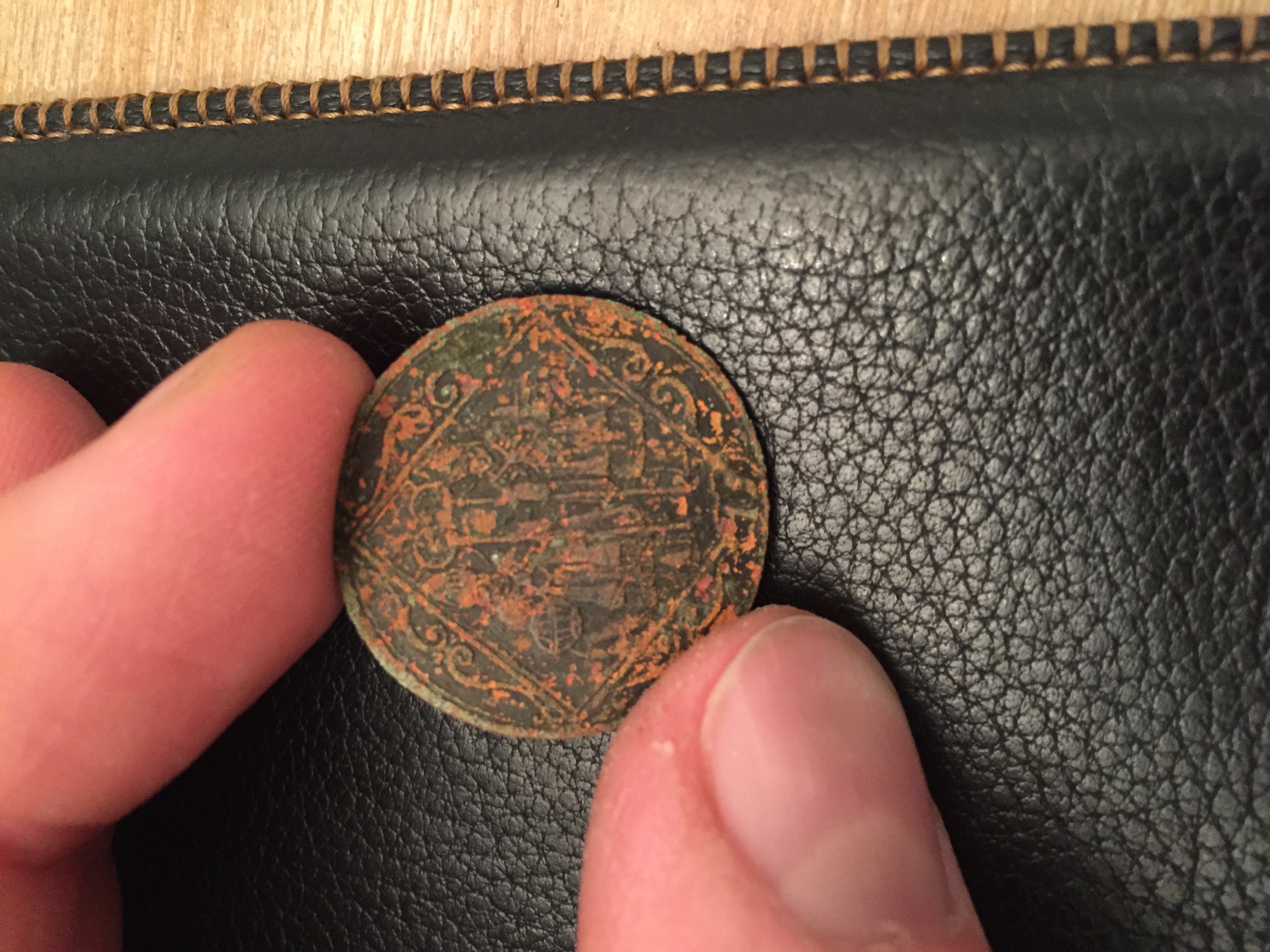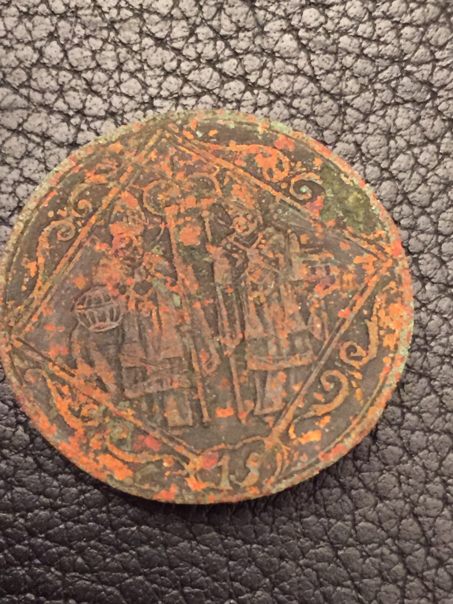 Hi Leute, hab grad nen echt schönen Knopf ausgebuddelt. Man erkennt zwei Priester mit Stab. Material müsste Kupfer sein. Kann jemand was dazu sagen? Hab null Plan