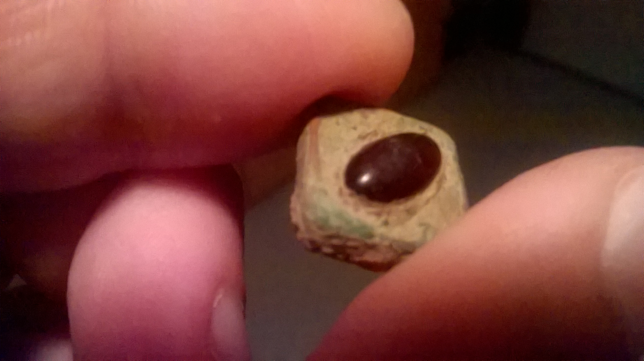 Evt ein Knopf oder ein Teilstück von einem Schmuckstein ?