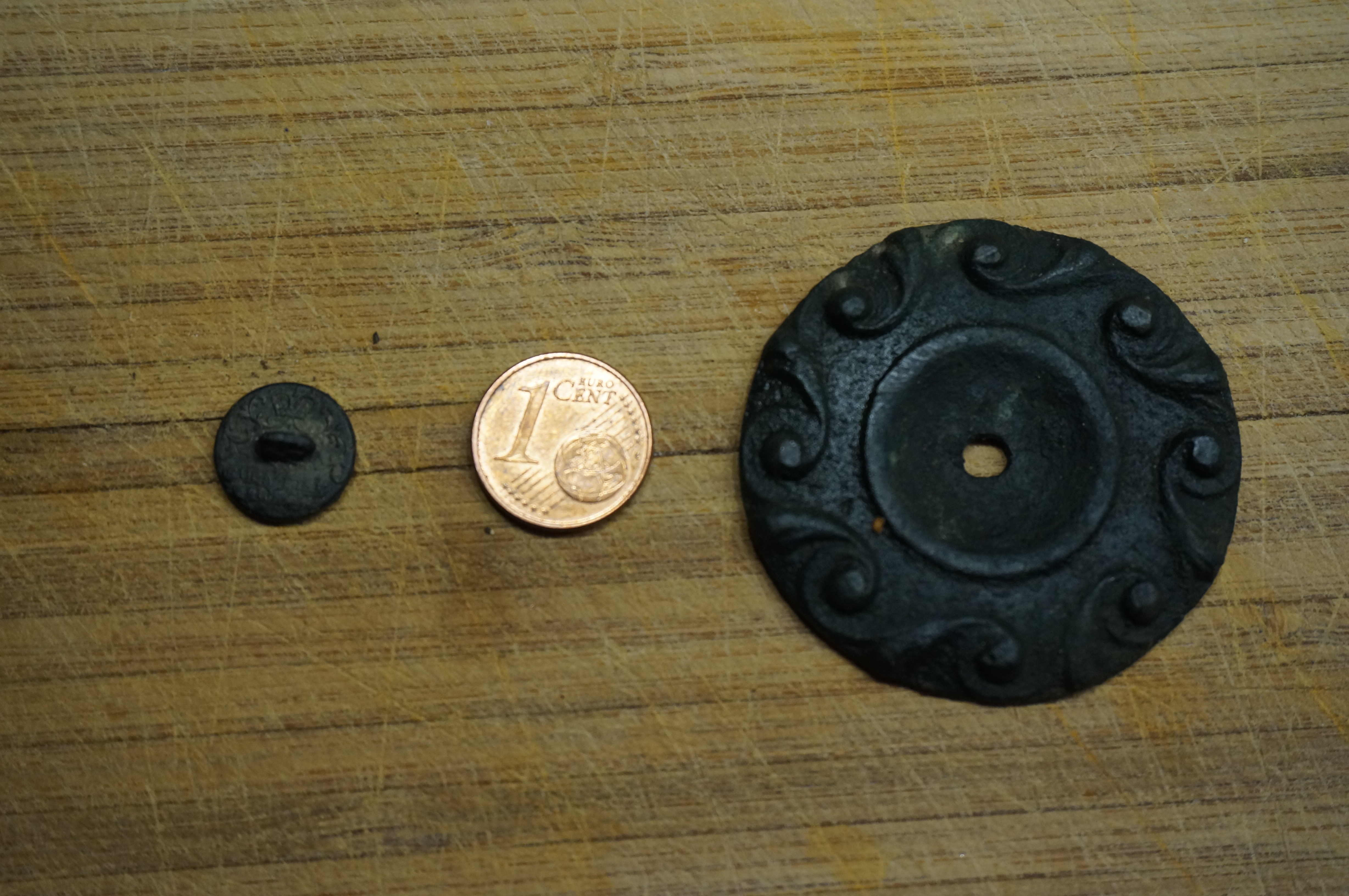 Hier ein sehr kleiner knopf mit Hase,Hund oder Reh. Das andere könnte auch ein knopf sein.