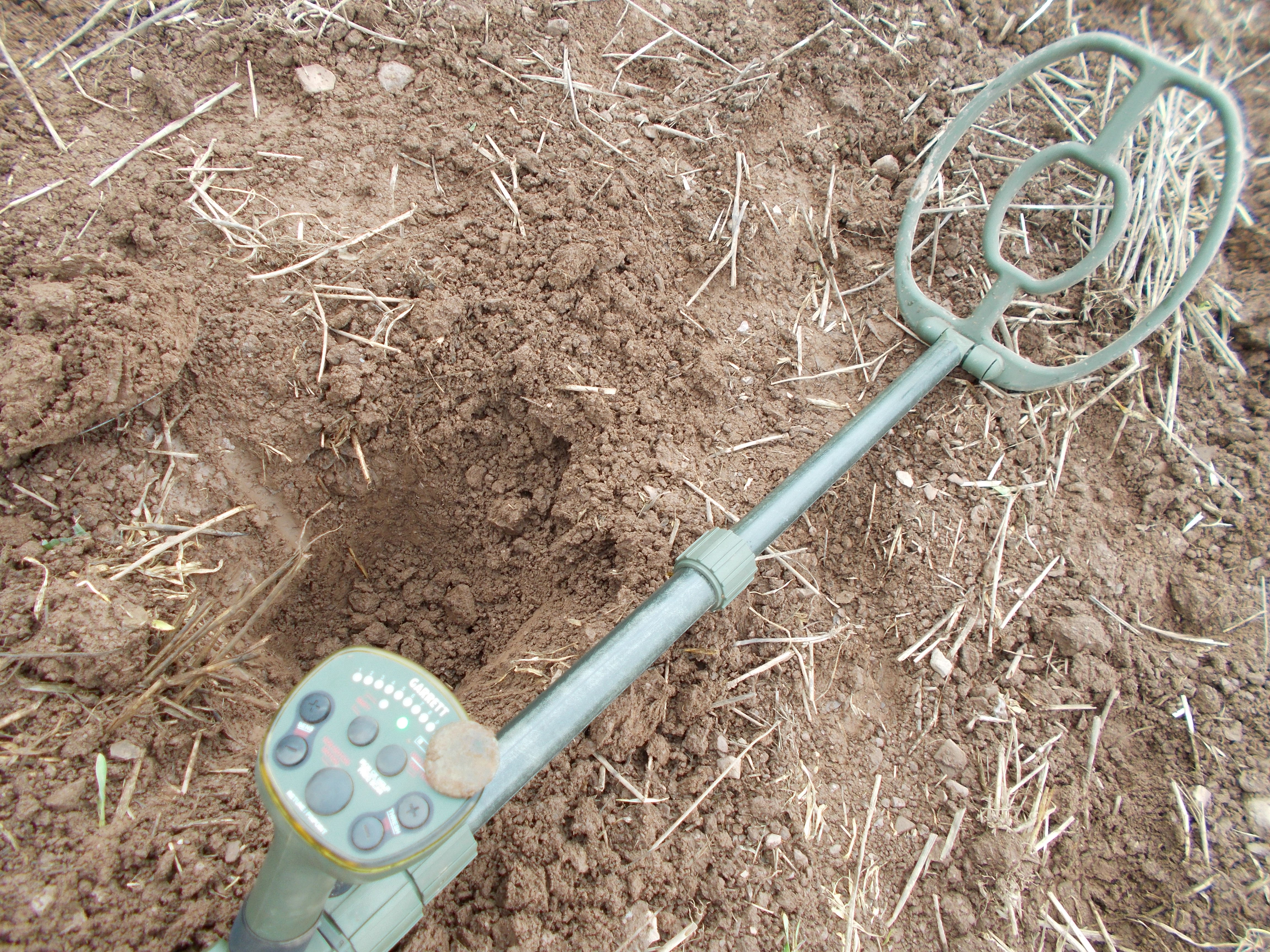 Dazu habe ich mir einen in den letzten Jahren sehr fundarmen und gerade frisch gegrubberten Acker ausgesucht. Ich wollte dort gezielt nach sehr schwachen Signalen graben und dazu verschiedene Einstellungen des Threshold in Kombination mit einer sehr empfindlichen Sens angraben.