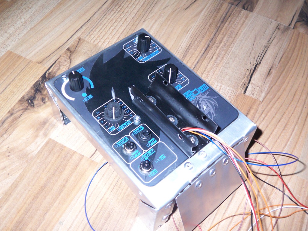 Ansonsten die Potiknöpfe fehlen noch, also die richtigen und ich mach unten noch einen Abstellschutz an die E-Box.