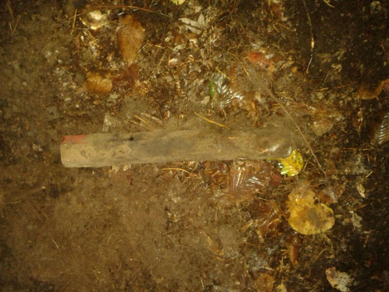 Habe die Bombe mit dem Spaten erwischt auf dem Bild sieht man die Kratzer nahe dem Druckzünder. :D