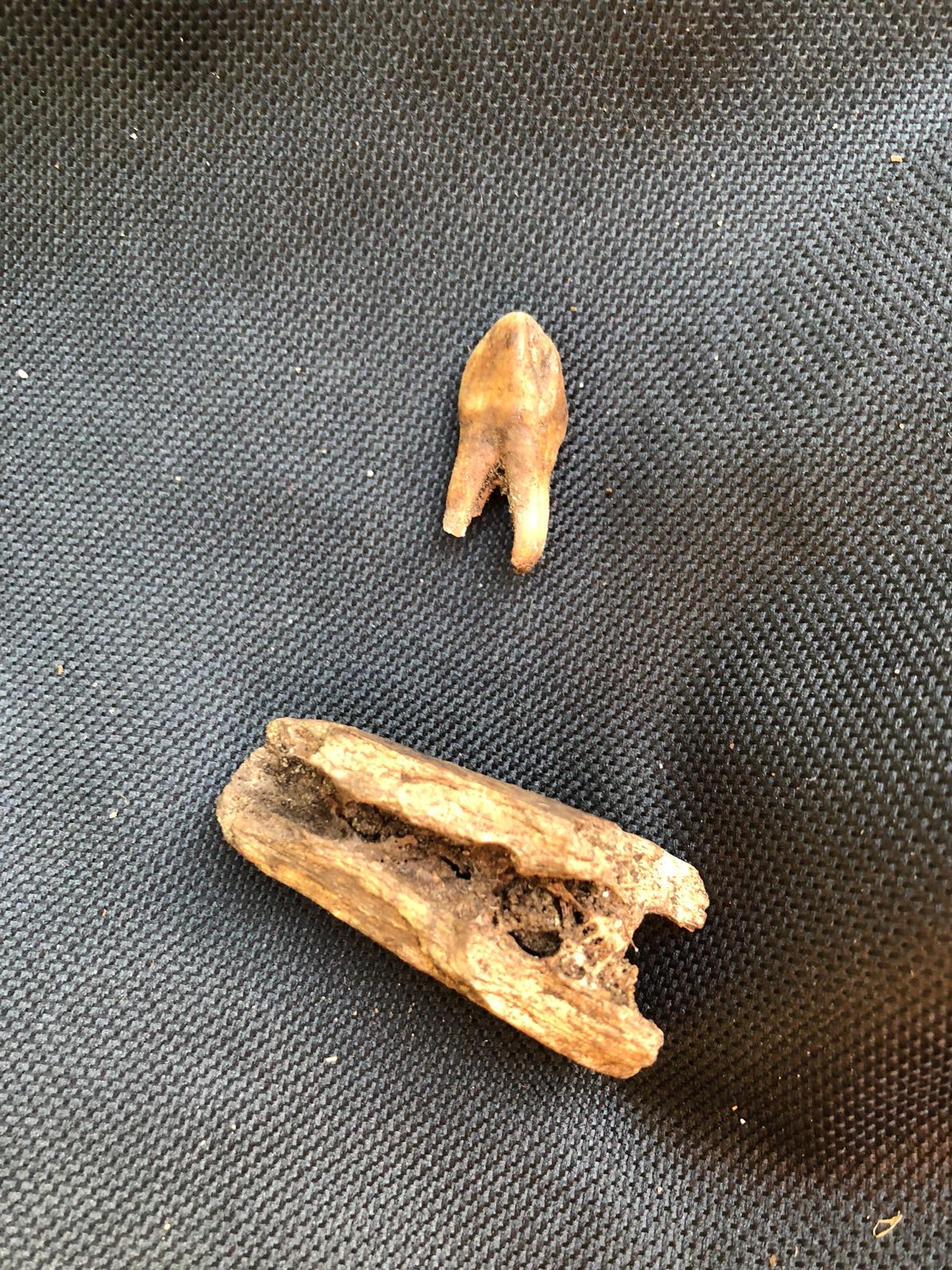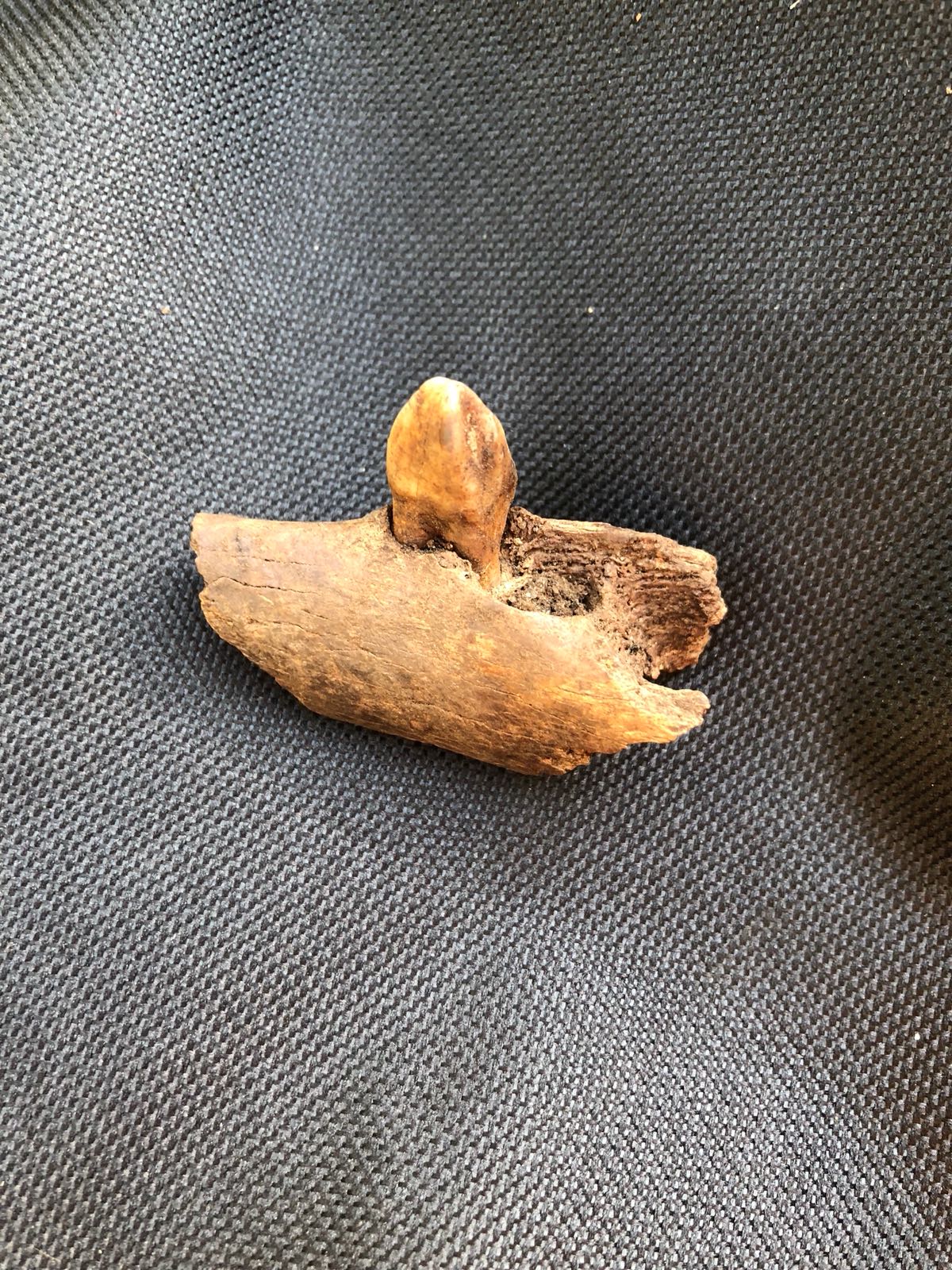 Guten Tag, ich habe dieses Kieferknochenfragment in 30cm Tiefe (Lehmboden unter einer aufgeschütteten Torfschicht, auf einem Spielplatz in Mainz) gefunden. War damit bei einem Tierarzt und einem Jäger. Beide sagen es gibt einige Ähnlichkeiten zu Ihnen bekannten Tieren, aber keine Übereinstimmung.