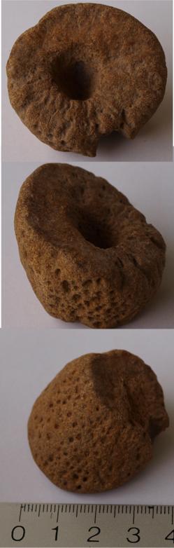 Mein Exemplar ist leider nicht so schön erhalten, aber man kann es erkennen - ich hielt es vor der Identifizierung übrigens für ein Dino-Ei oder einen Hoden - jajaja, nicht lachen, wer kommt schon auf die Idee das auch ein Schwamm versteinern kann