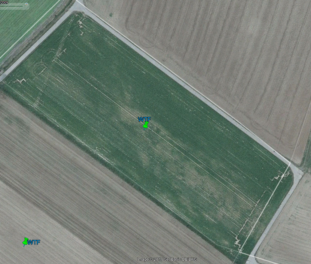 Hallo an alle, bei meiner Google Maps Suche bin ich auf 2 Strukturen in einem Feld gestossen. Diese waren in mehreren Jahren sichtbar aber nie beide zusammen in einem Jahr, deshalb habe ich beide Bilder uebereinander gelegt.