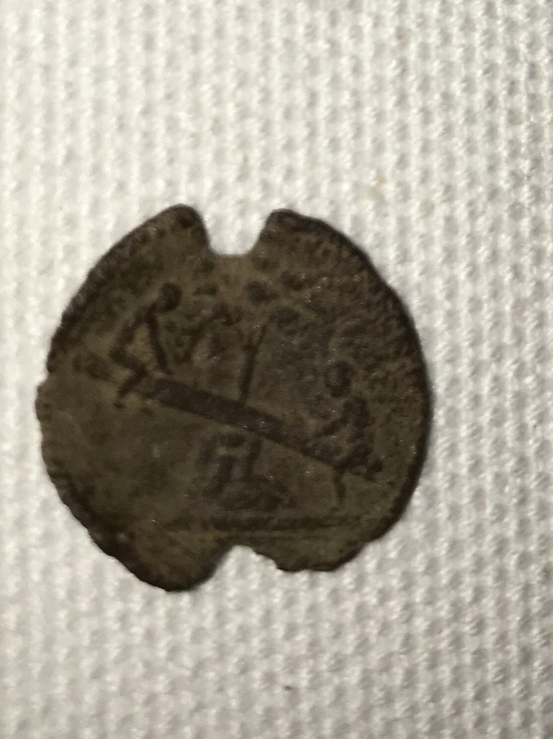 Die Münze ist sehr dünn und womöglich aus Bronze.