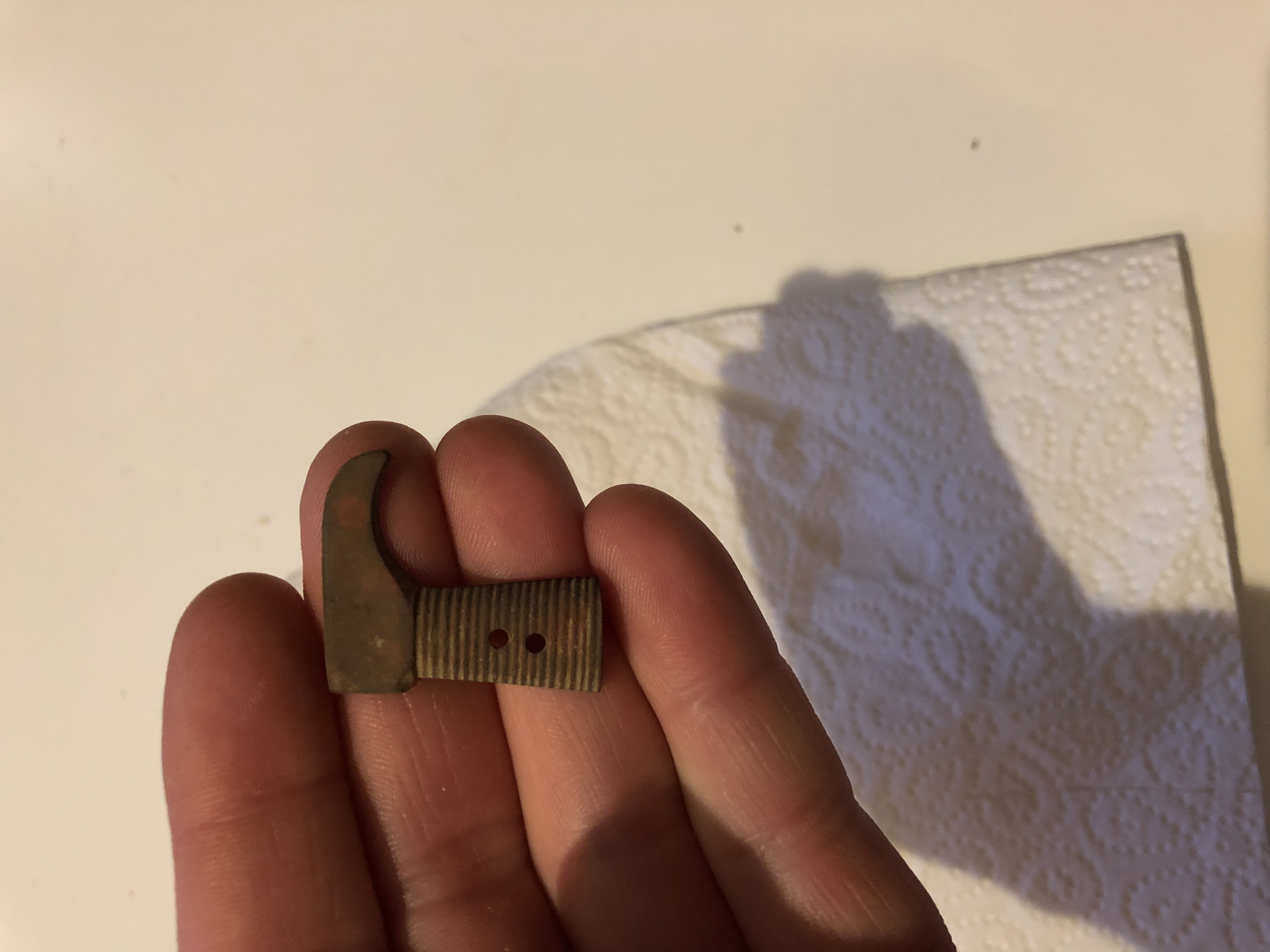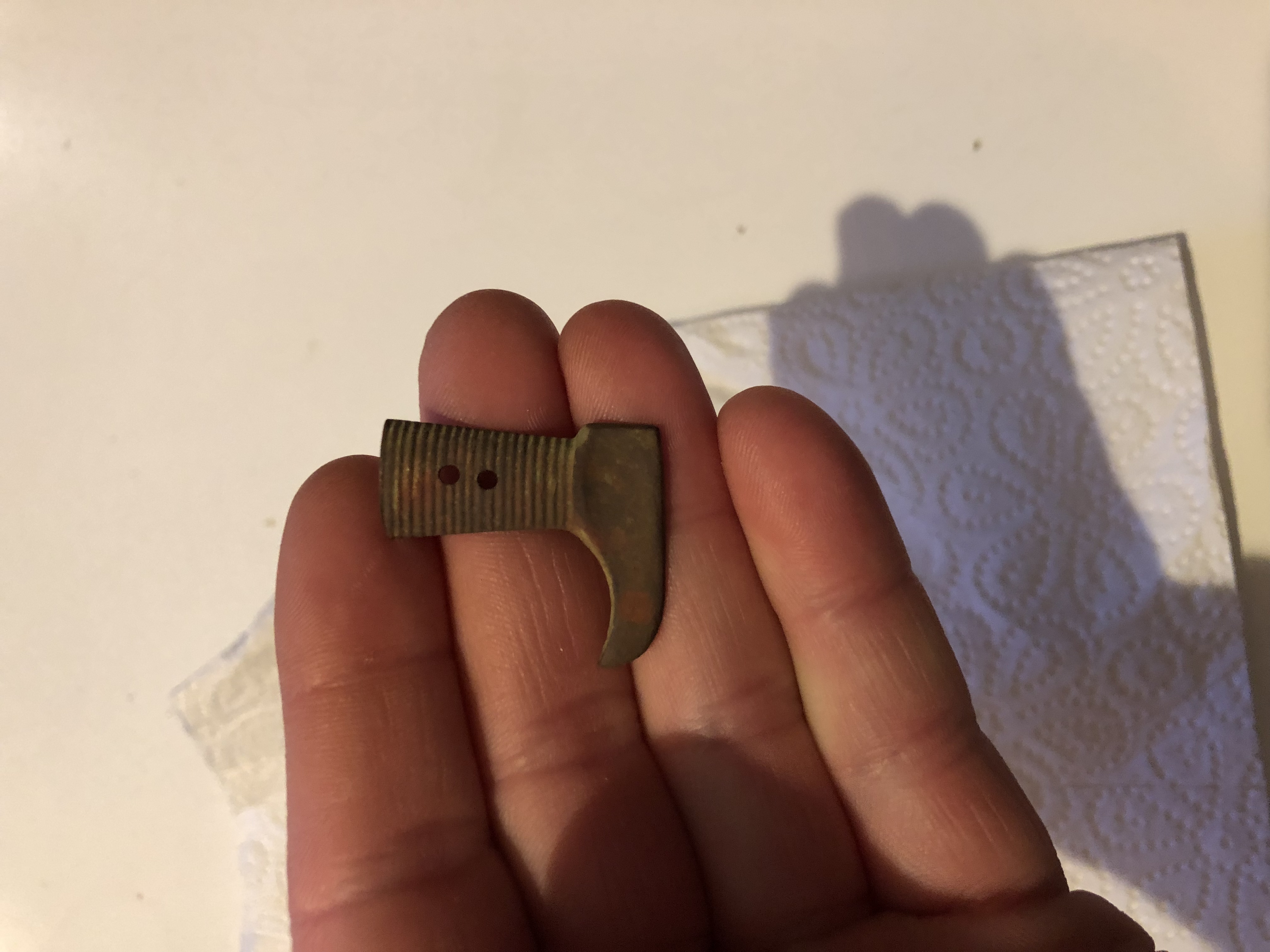 Nein eigentlich nicht aber der Tipp mit dem Teil eines Messergriffs war denke ich schon richtig... die Löcher waren für die Nieten da und der Griff war aus Holz.