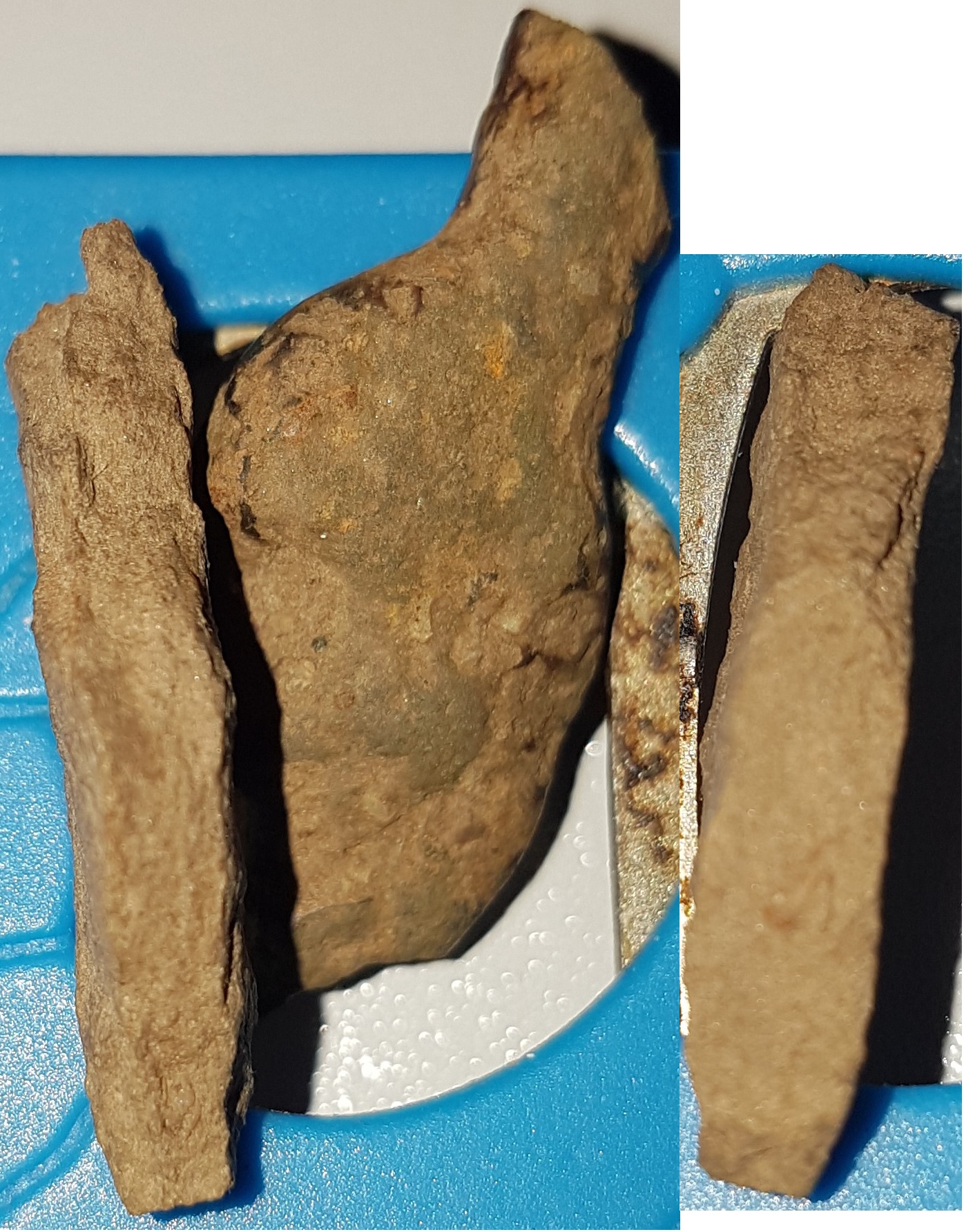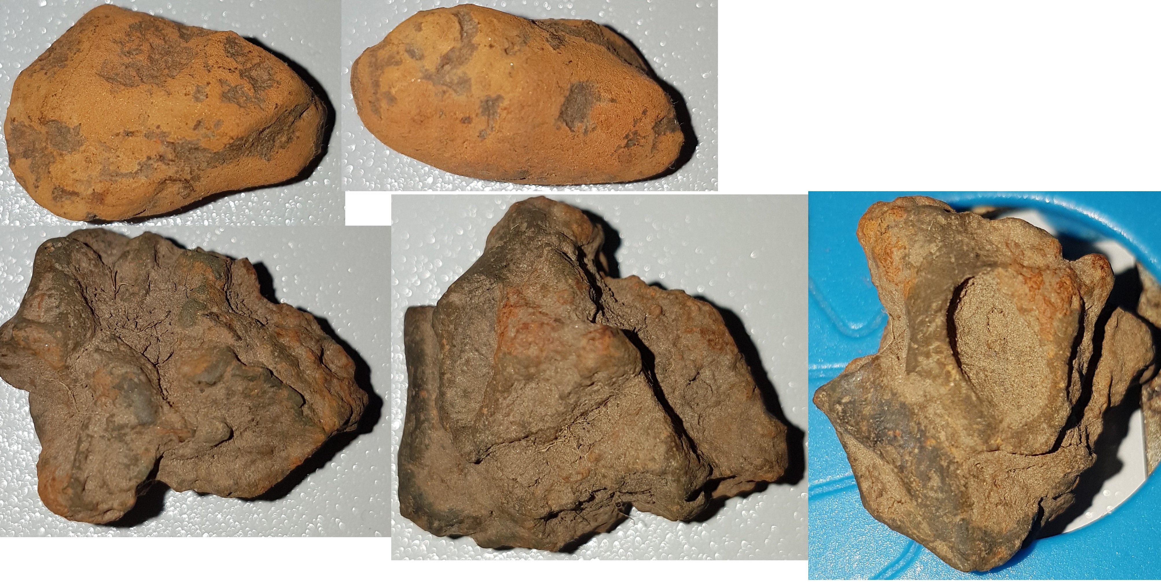 Daher meine Frage: Kann davon irgenetwas künstliches sein? Bild Nr1 sieht mir nach einerScherbe aus, wegen der Wölbung. Bild Nr 2 ein Tonbrocken und Schlacke? Bild Nr 3 und 3a Schlacke und eine Scherbe? Nr 4 könnte eine dickwandige Scherbe sein. Zumindest erkennt man eine Rille oder Wölbung.