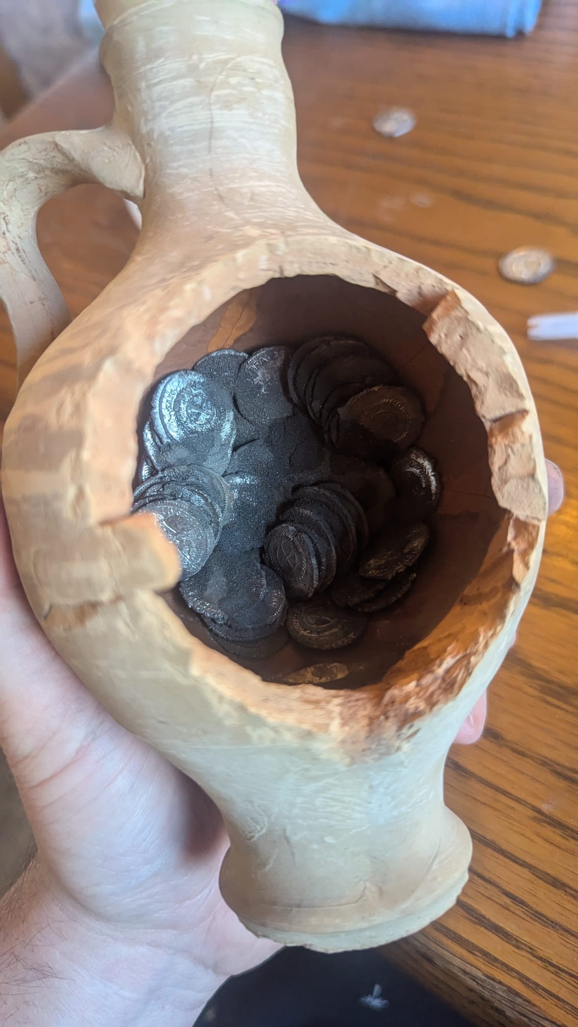 Als elftes kam dann die Montage des Pokals dran. Es handelt sich hierbei um eine Replik eines römischen Henkel Krugs. Es wurde dann durch gezielte Hammerschläge der Krug seitlich geöffnet.