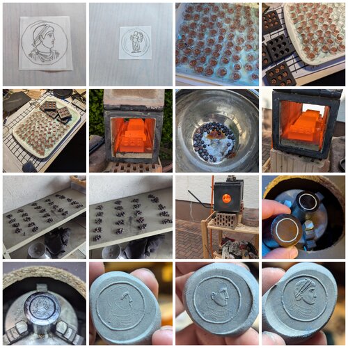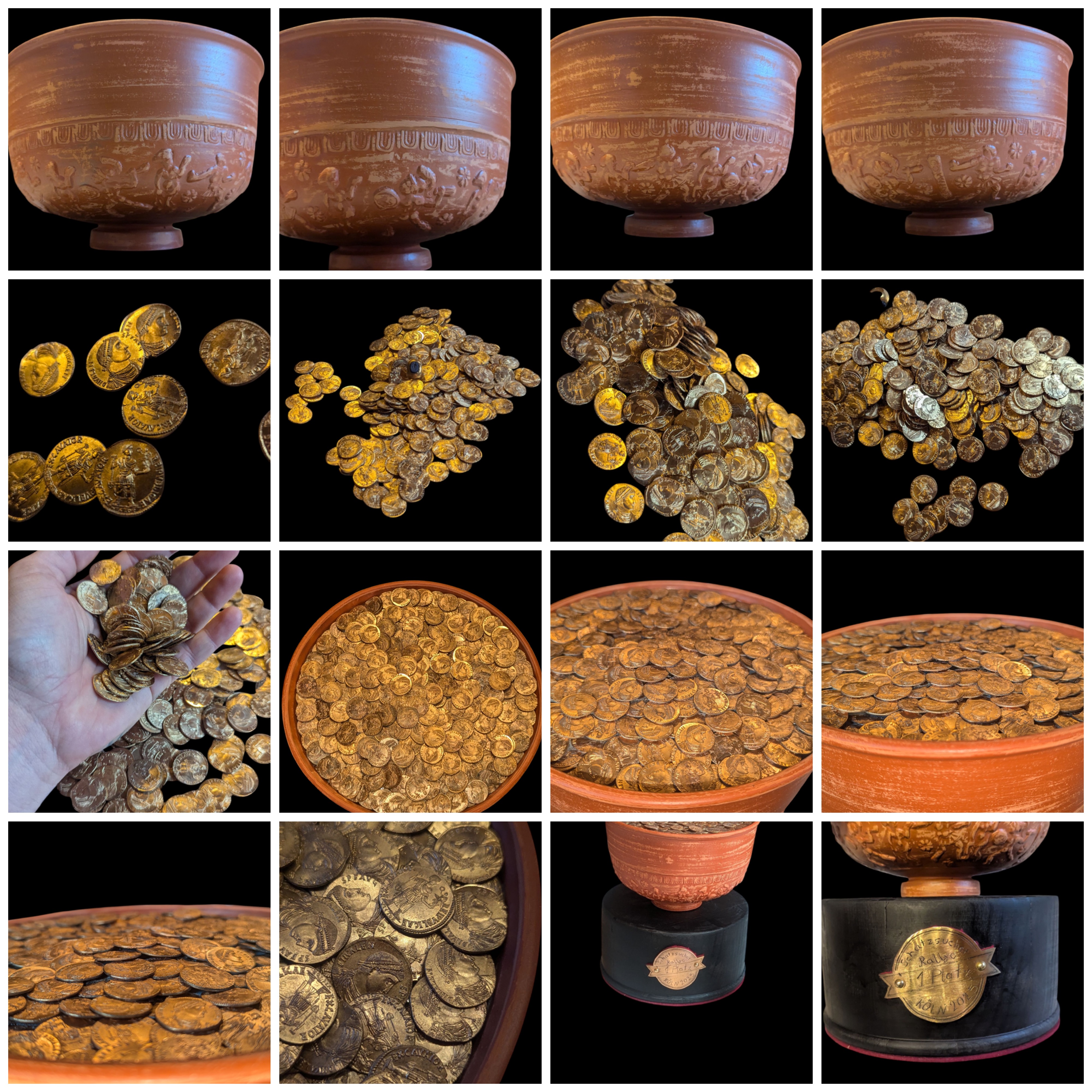 Als neunzehntes wurden die fertigen Münzen in eine Terra Sigilata Schale mit Gladiatoren Motiv arrangiert was ca. 3 Std. dauerte.
