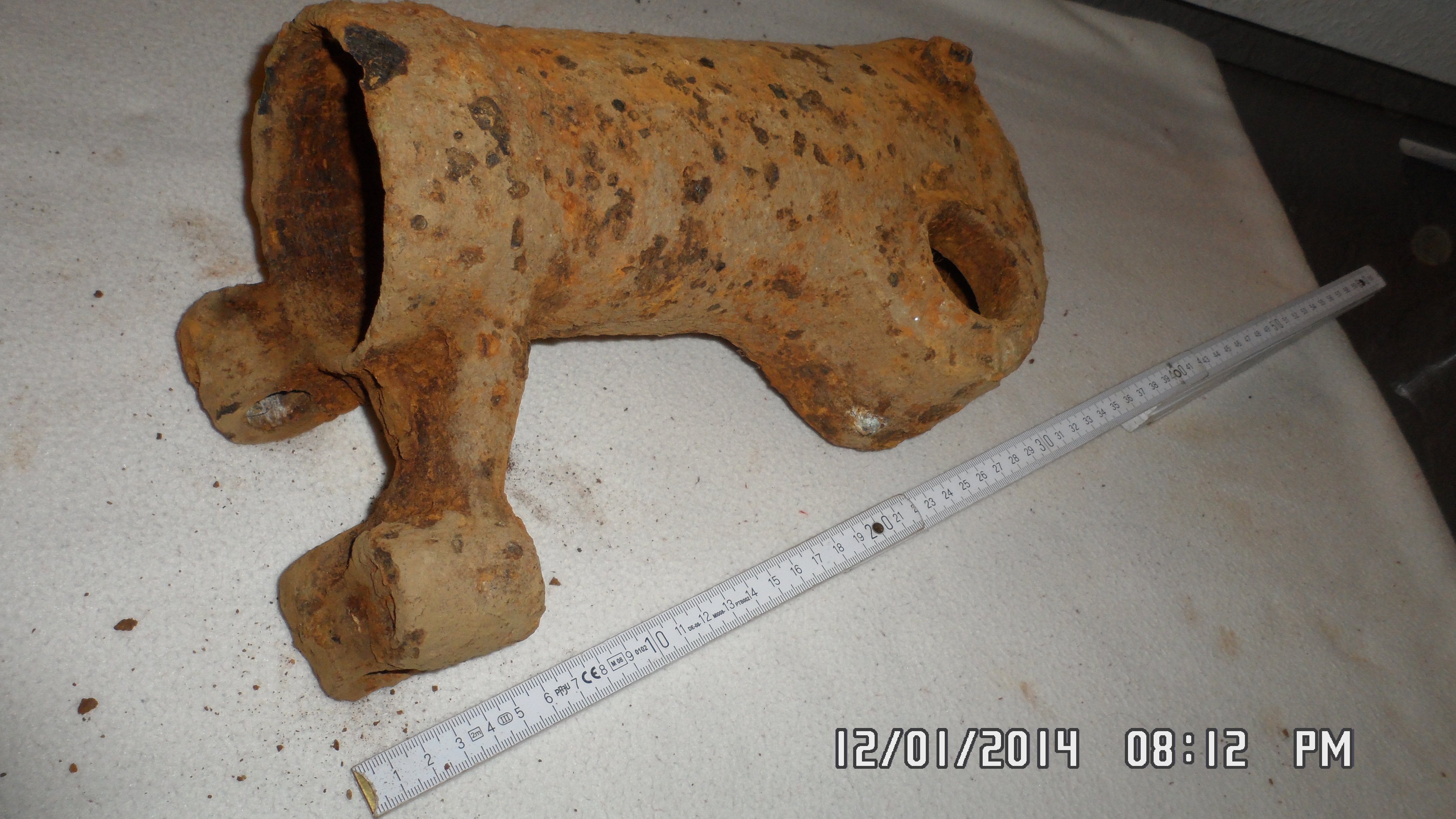 Was könnte denn das größere sein? Irgendein Maschinenteil. Es scheint Eisen zu sein. Aber wie kommt das auf einen Acker in 40cm Tiefe?
