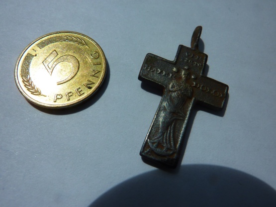 Das mit der Schrift wollte ich auch gerade sagen, ich kann das nicht lesen. :( Könnte ein Kreutz von einem Rosenkranz sein von der Größe her.