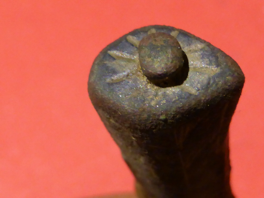 hoffe hast nichts dagegen, wenn ich mal meinen Messergriff hier einstelle. Dürften so in etwa die gleichen sein. Ok, mach mich mal noch auf die Suche nach der Messerkrone. :ironie Die Verkrustungen sind sehr hartnäckig, lag bei mir jetzt 2 Wochen in dest. Wasser, da tut sich so gut wie nichts. Wie reinigst du das Teil ?
